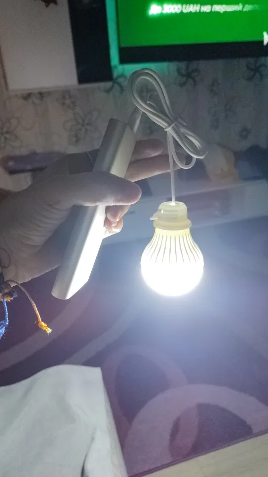 классная диодная лампочка , со шнуром и вилкой . Дёшево, доступно удобно. спасибо