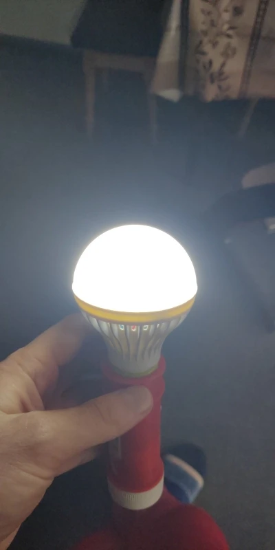 Лампа не сильно яркая, как аварийка пойдёт. Комнату 18 квадрат освещает нормально, видно всё, можна парочку таких повесить, будет норм. Если для палатки в поход, вообще огонь будет. Мерял 7 вт. лампа потребляет 5 вт.