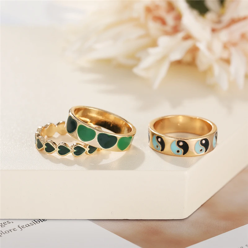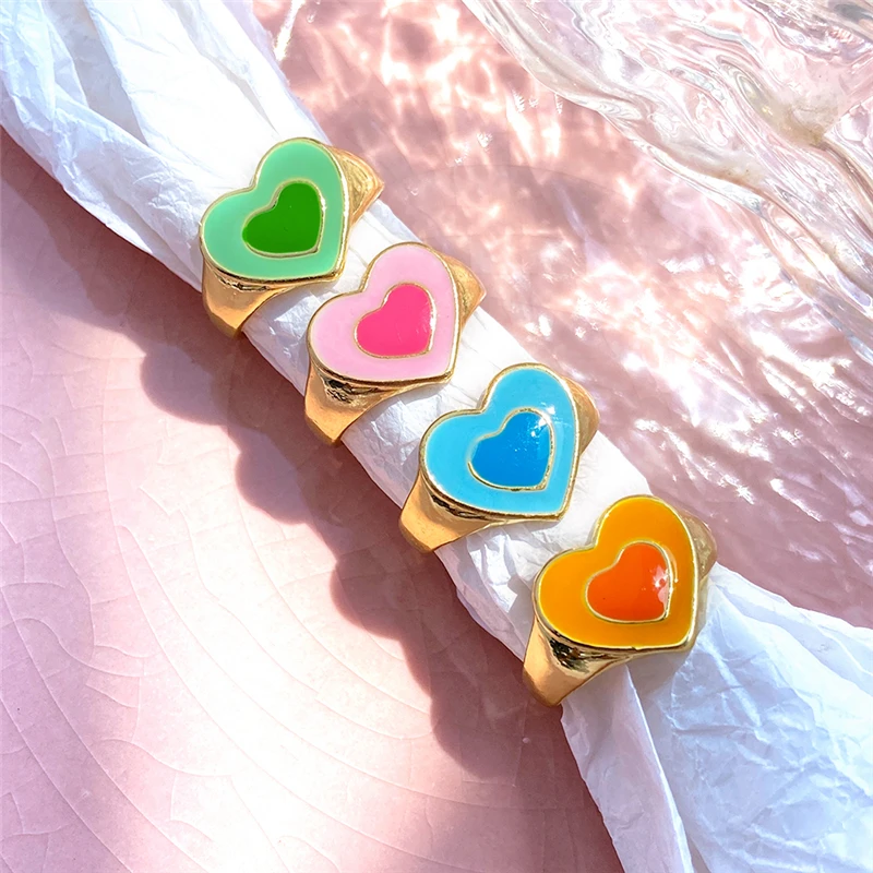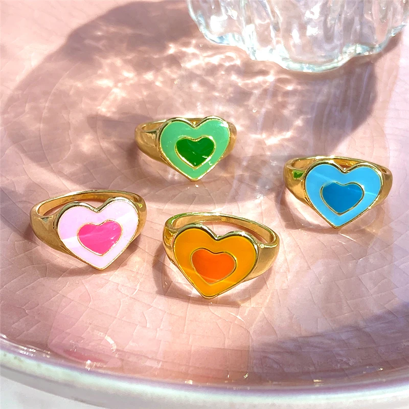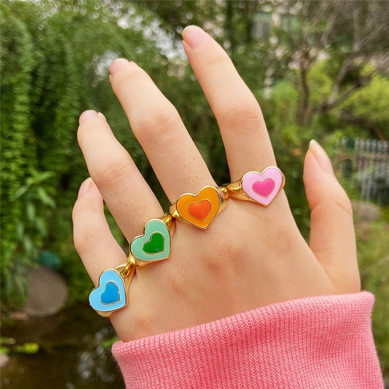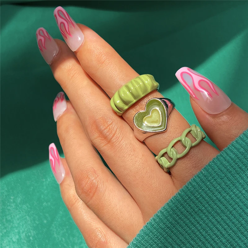 Богемные кольца в форме сердца набор для женщин мода розовое зеленое любовь сердца кольцо оптом ювелирная вечеринка