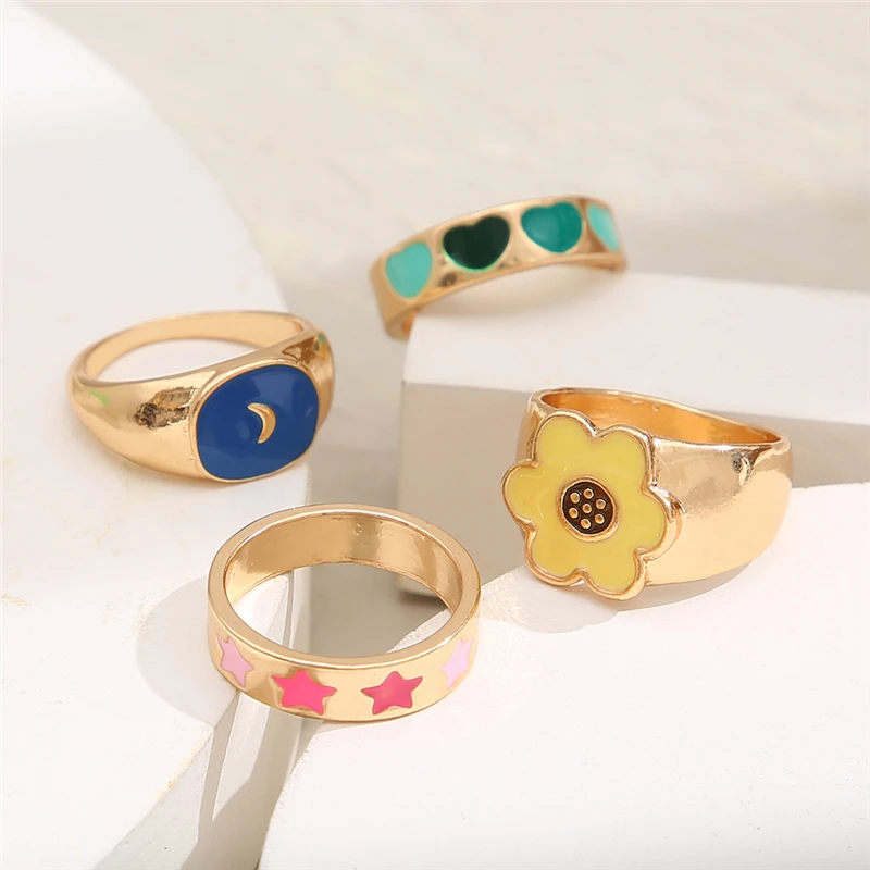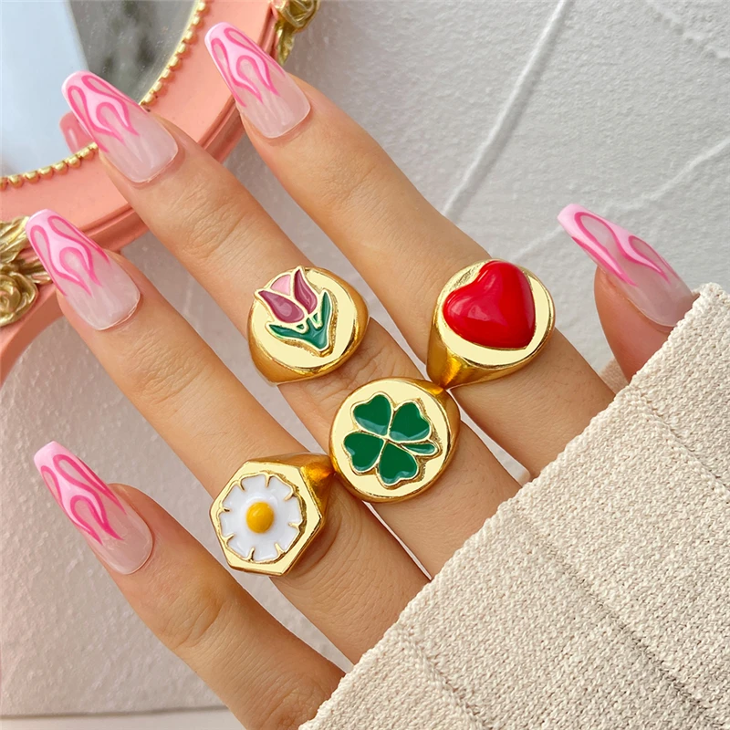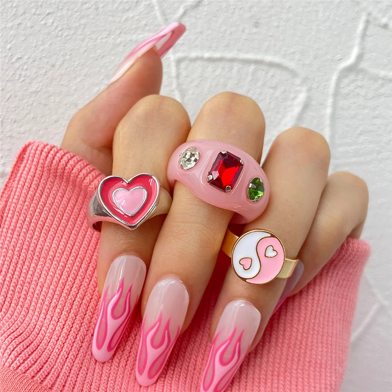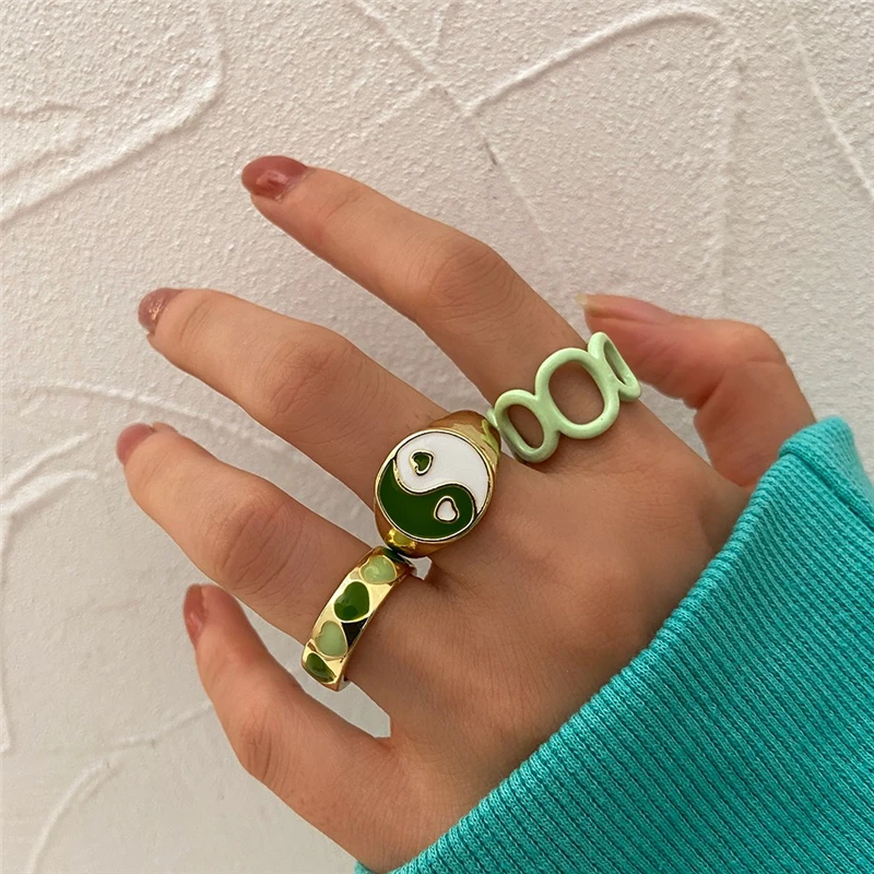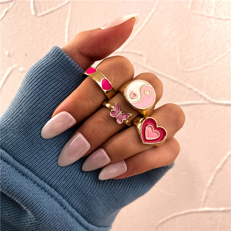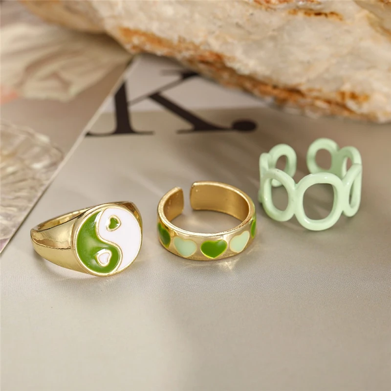 Богемные кольца в форме сердца набор для женщин мода розовое зеленое любовь сердца кольцо оптом ювелирная вечеринка