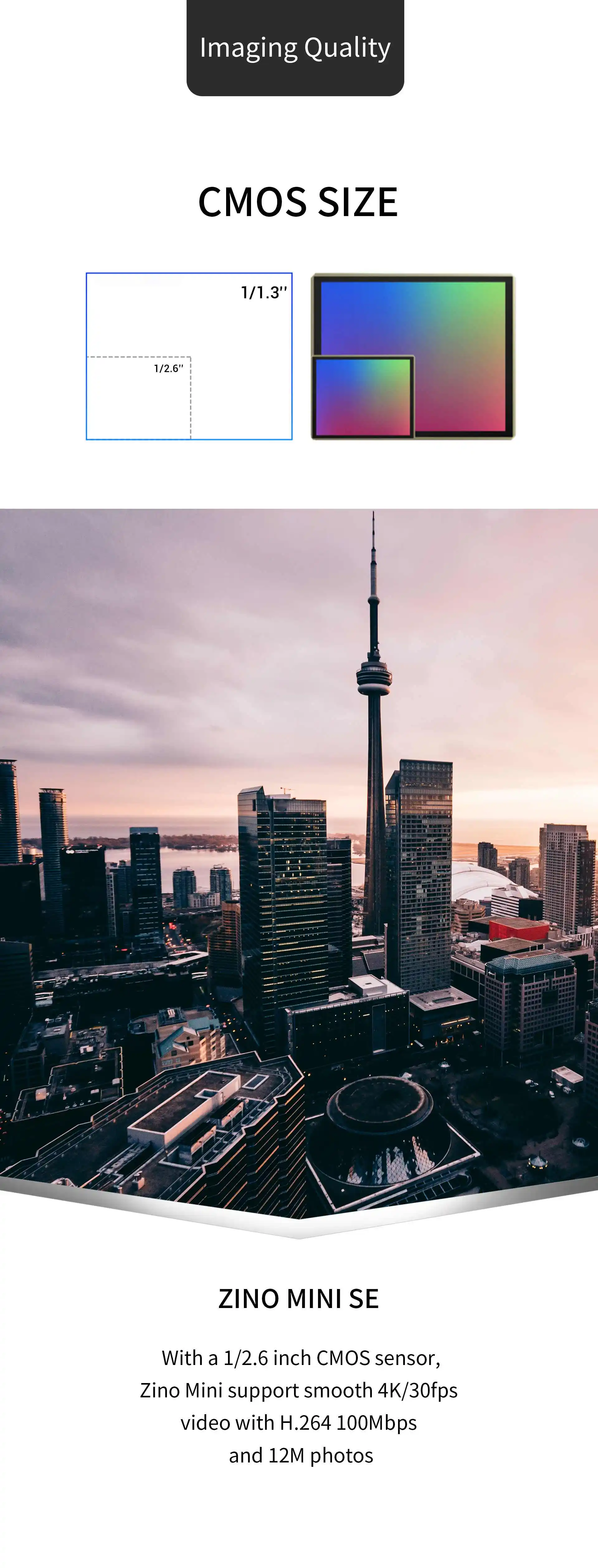 Размер CMOS: 1/1.3С 1/2.6 дюйма КМОП-матрица, Zino мини поддержка гладкой 4K/30fps видео с H.264 100 Мбит/с и на возраст от 12 мес. фото