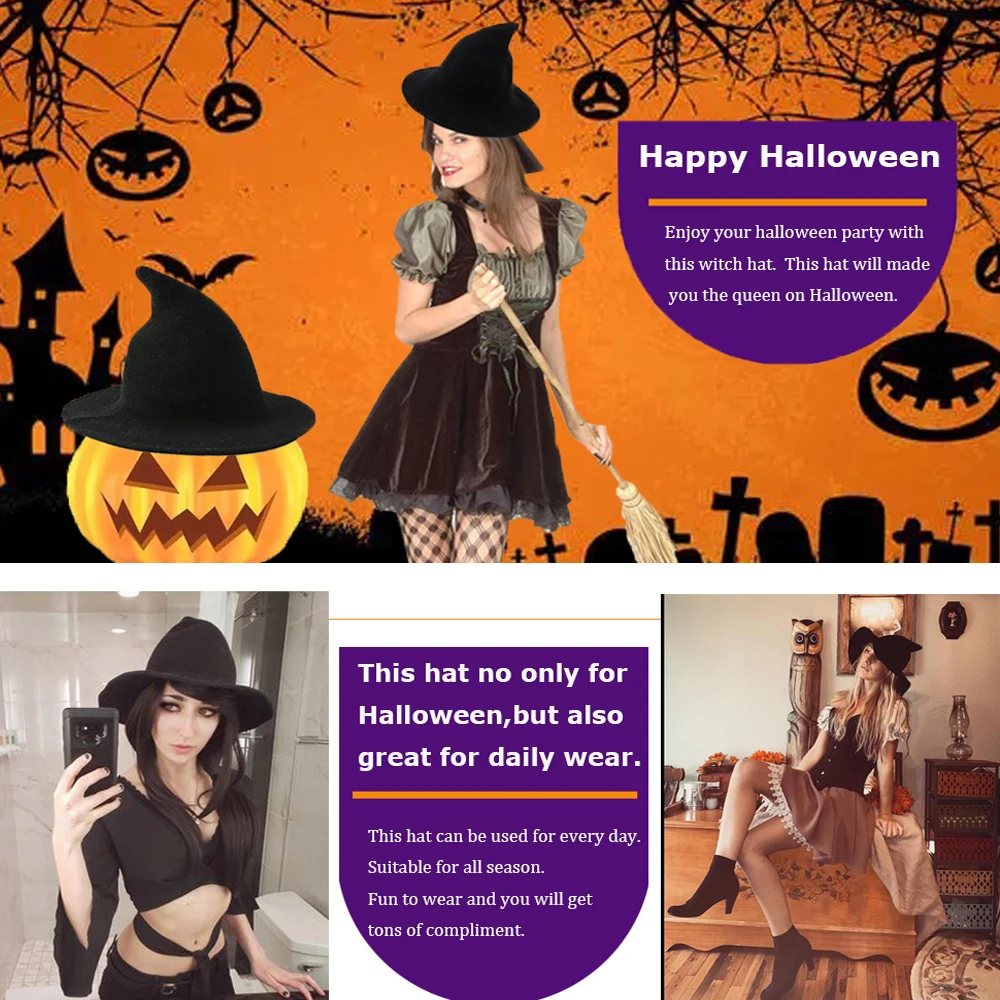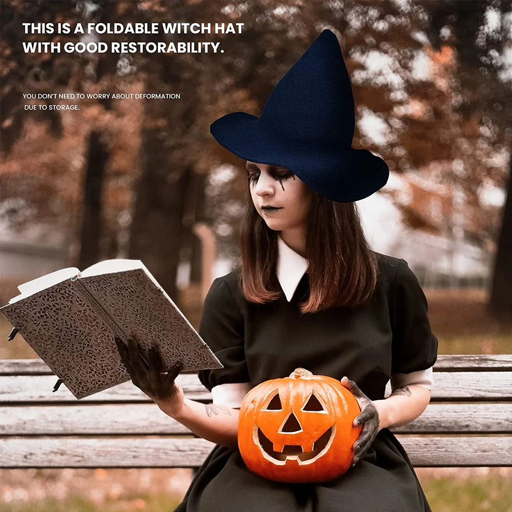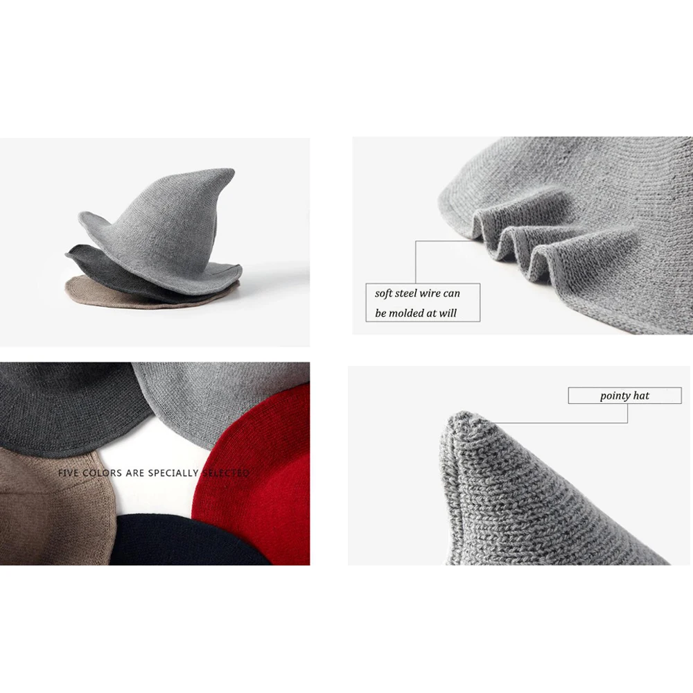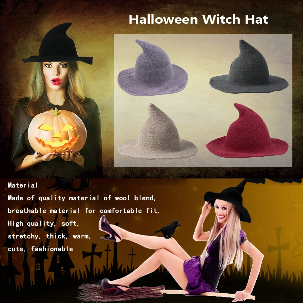 Шляпа ведьмы для Хэллоуина, мужская и женская шерстяная вязаная шап...