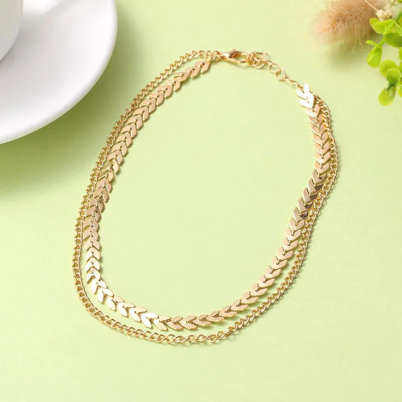 Двухслойная цепочка-чокер золотистая, ожерелье из двух компонентов:...
