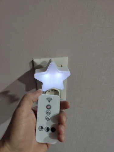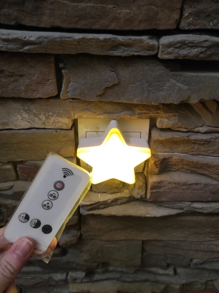 качество хорошее, размер не большой, как ночной светильник с головоц, на пульте регулируется яркость и есть таймер, но если пульт потеряли то физических кнопок на светильнике нет, нужно будет доставать из розетки.