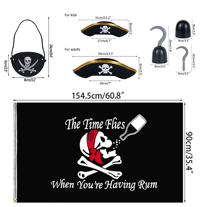 Флаг Джелли Роджера на Хэллоуин, головка черепа, пиратская шляпа, фетровая детская и взрослая повязка на глаза для косплея, искусственная пластиковая игрушка на Хэллоуин