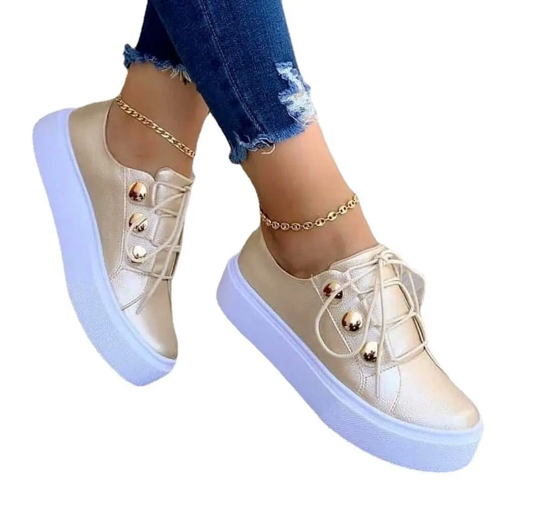 Кроссовки женские из ПУ кожи, парусиновые, на шнуровке, толстая под...