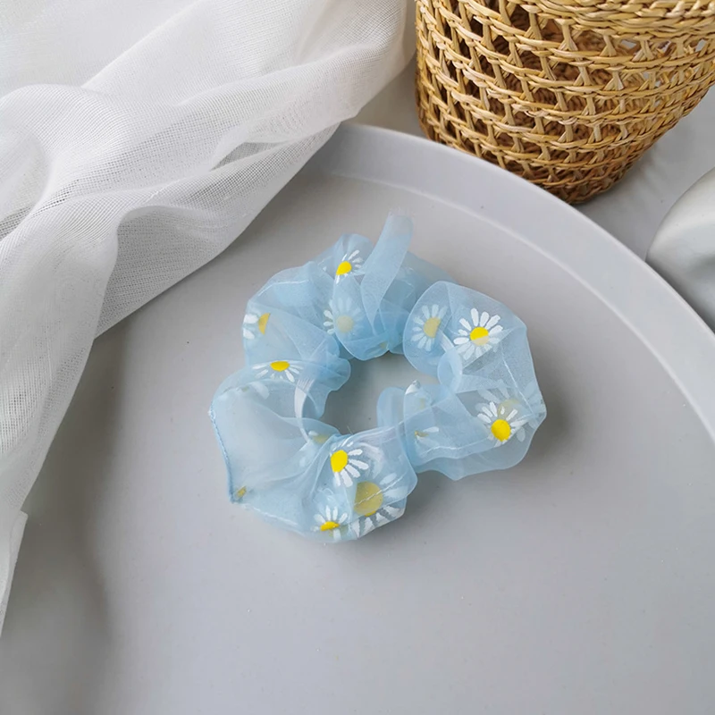 Резинка для волос из сетчатой пряжи, маленькие резинки для волос с принтом маргариток, эластичная резинка для волос, аксессуары для волос, головной убор из мягкой органзы