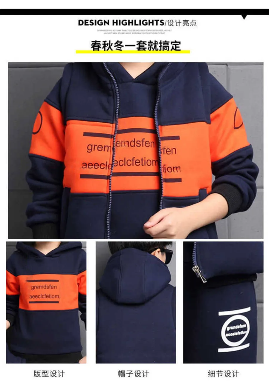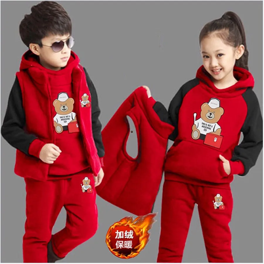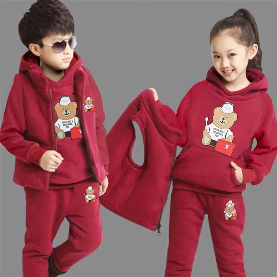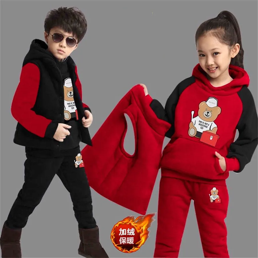 Спортивный костюм для мальчиков 3 шт.комплект, детский хлопковый жилет с капюшоном + футболка + штаны, спортивная одежда для подростков, детский спортивный костюм, теплая одежда