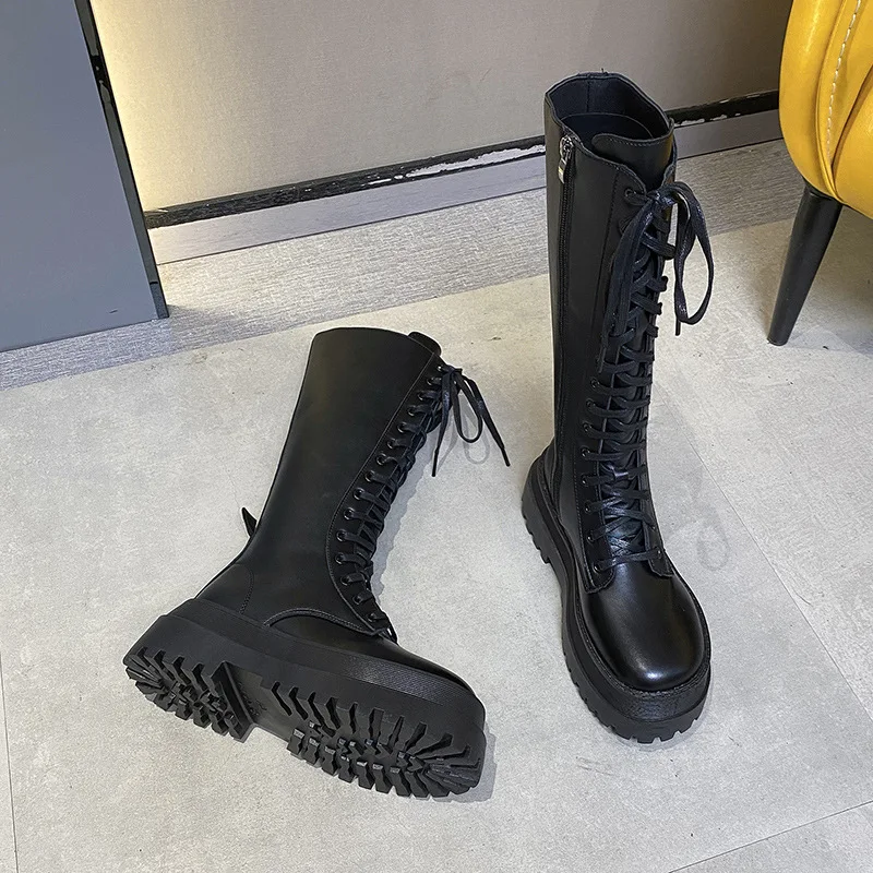 Сапоги до колена на молнии с перекрестной шнуровкой и круглым носко...