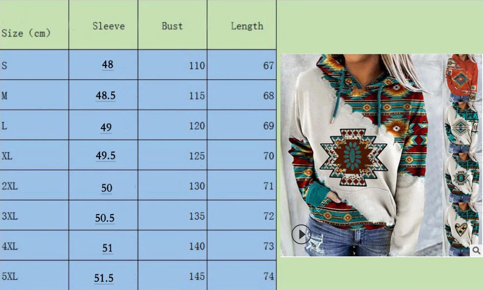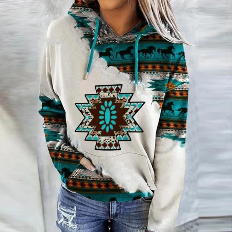 Женские толстовки, Повседневный пуловер с принтом в фольклорном сти...