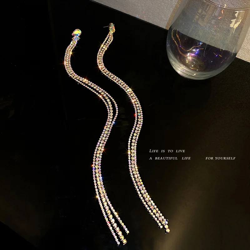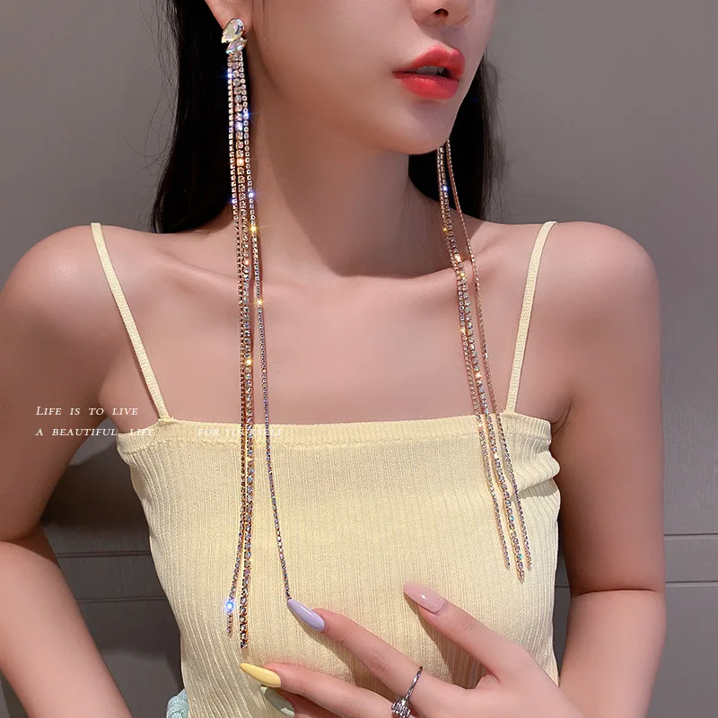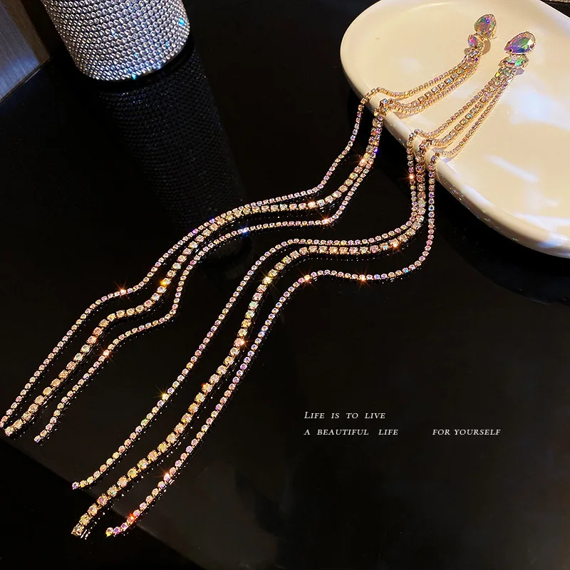 Модные длинные висячие серьги оверсайз Стразы с кисточками для женщ...