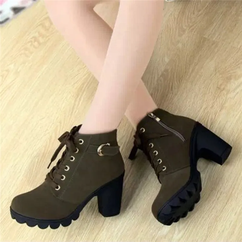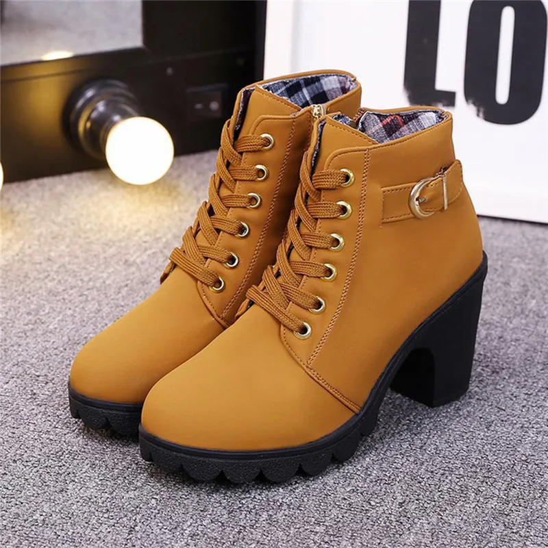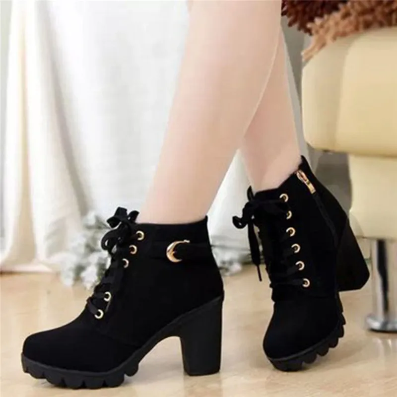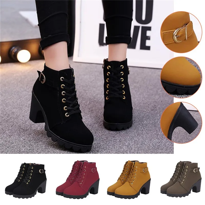 Женские мотоциклетные ботинки до щиколотки, на высоком каблуке, без...