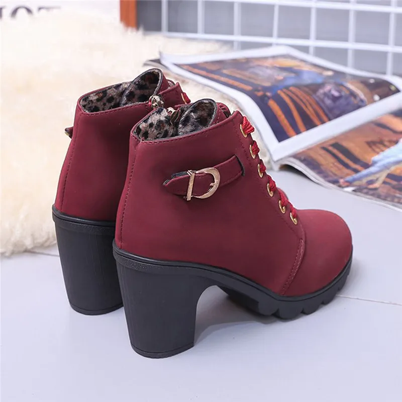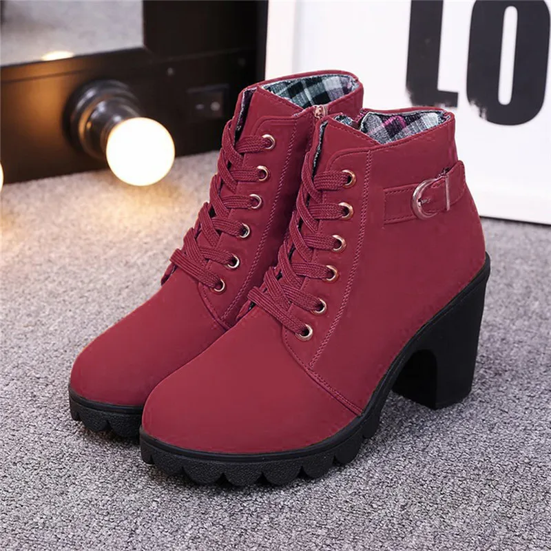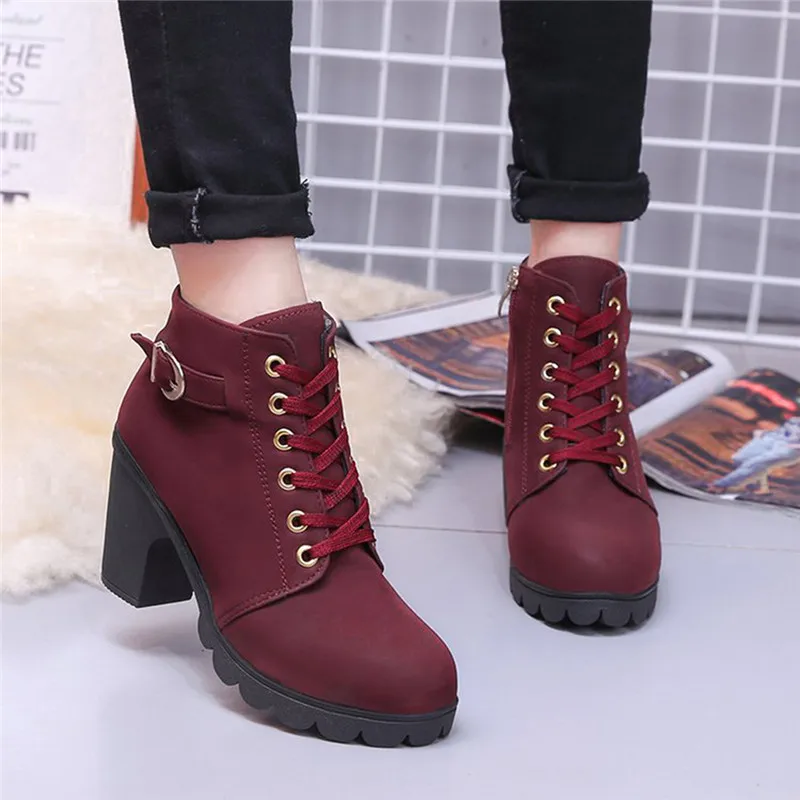 Ботинки женские осенние на танкетке 8,5 см, со шнуровкой