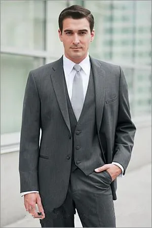 Красивые темно-серые мужские костюмы, Классические свадебные, вечерние, деловые, для жениха, облегающие смокинги (пиджак + жилет + брюки)