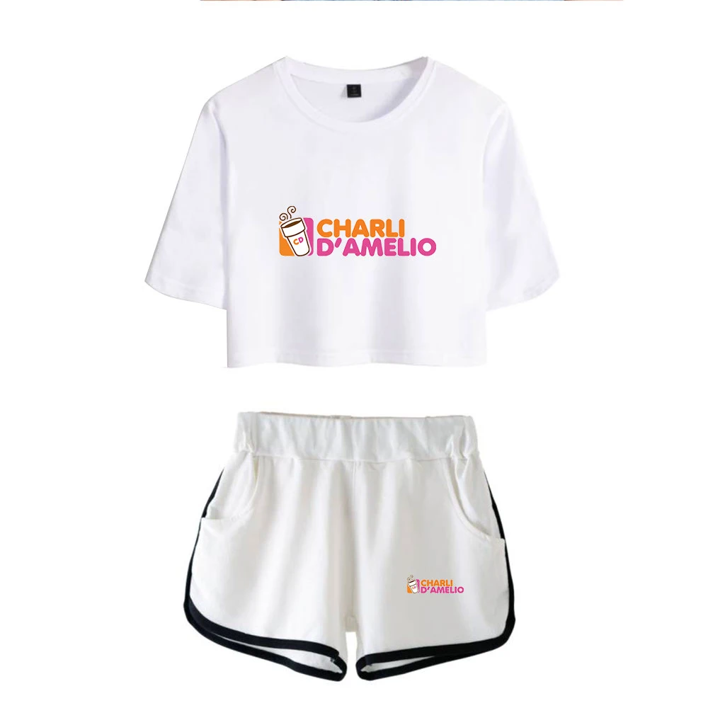 Charli D Amelio ледяной кофе брызги женщины комплект из двух частей шорты + Милая футболка сексуальный Charli Damelio Merch спортивный костюм Y2K девушки