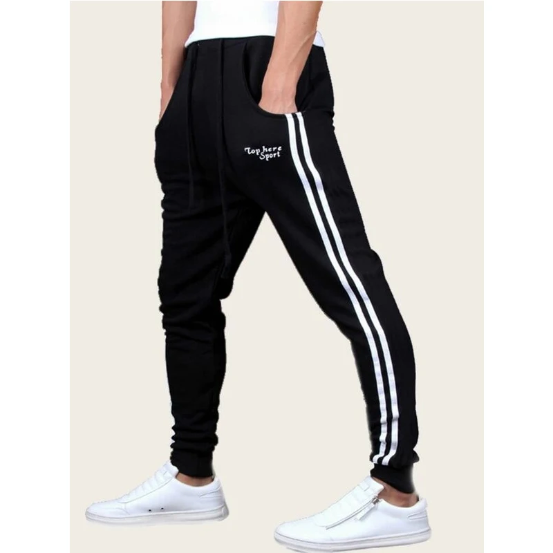 Мужские хлопковые шаровары в полоску, спортивные штаны для фитнеса, джоггеры, модная уличная одежда для бега