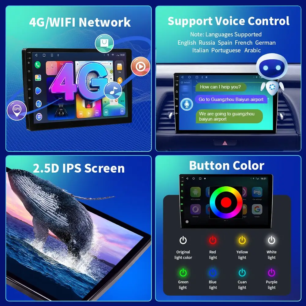 Автомагнитола 2 Din, Android 10, 4G, Wi-Fi, USB, BT, Carplay, DSP, ...