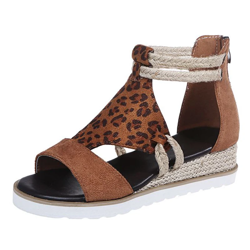 Сандалии женские с леопардовым принтом, модная Винтажная обувь на п...