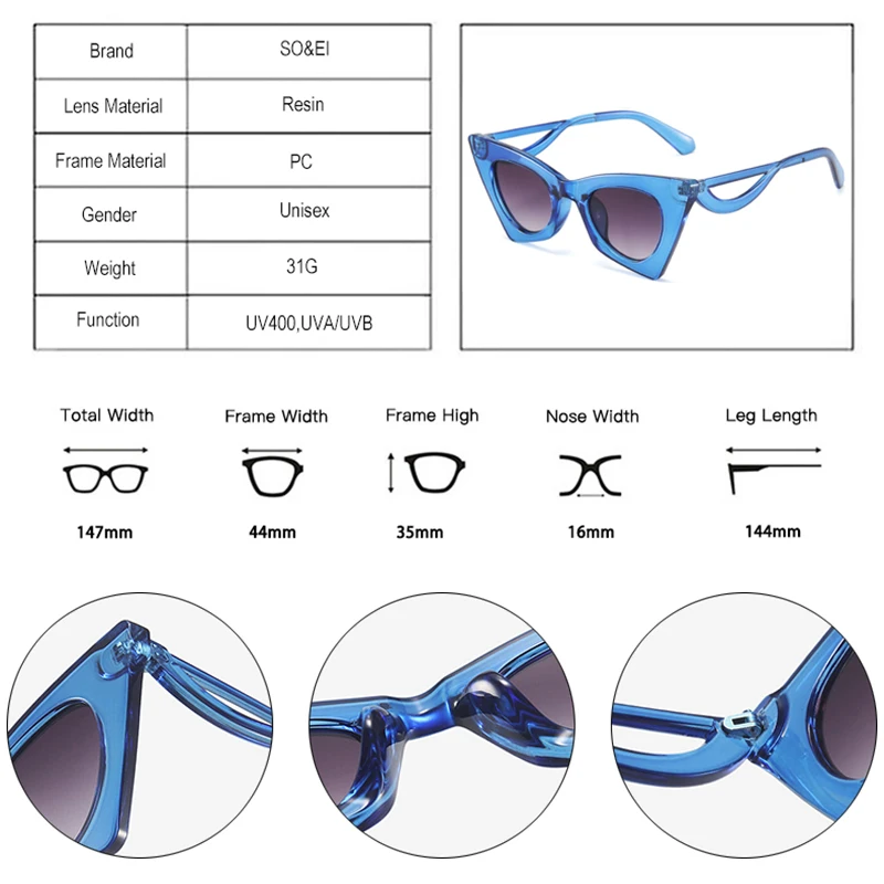 Солнцезащитные очки SO EI женские, кошачий глаз, с уникальными дужками, с защитой UV400