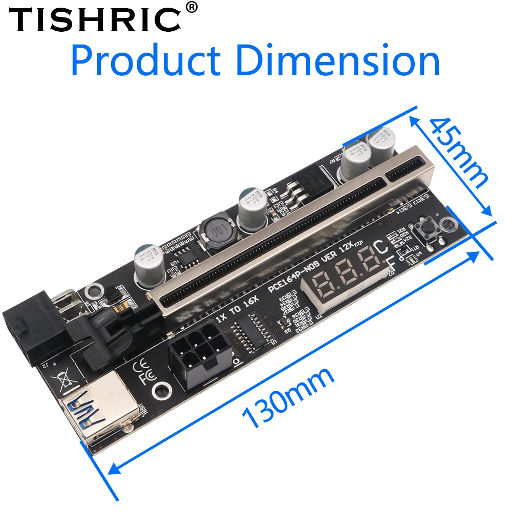 TISHRIC PCIE Райзер Экспресс 1x до 16x удлинитель 6-контактный адаптер Райзер карта с индикатором температуры для майнинга BTC