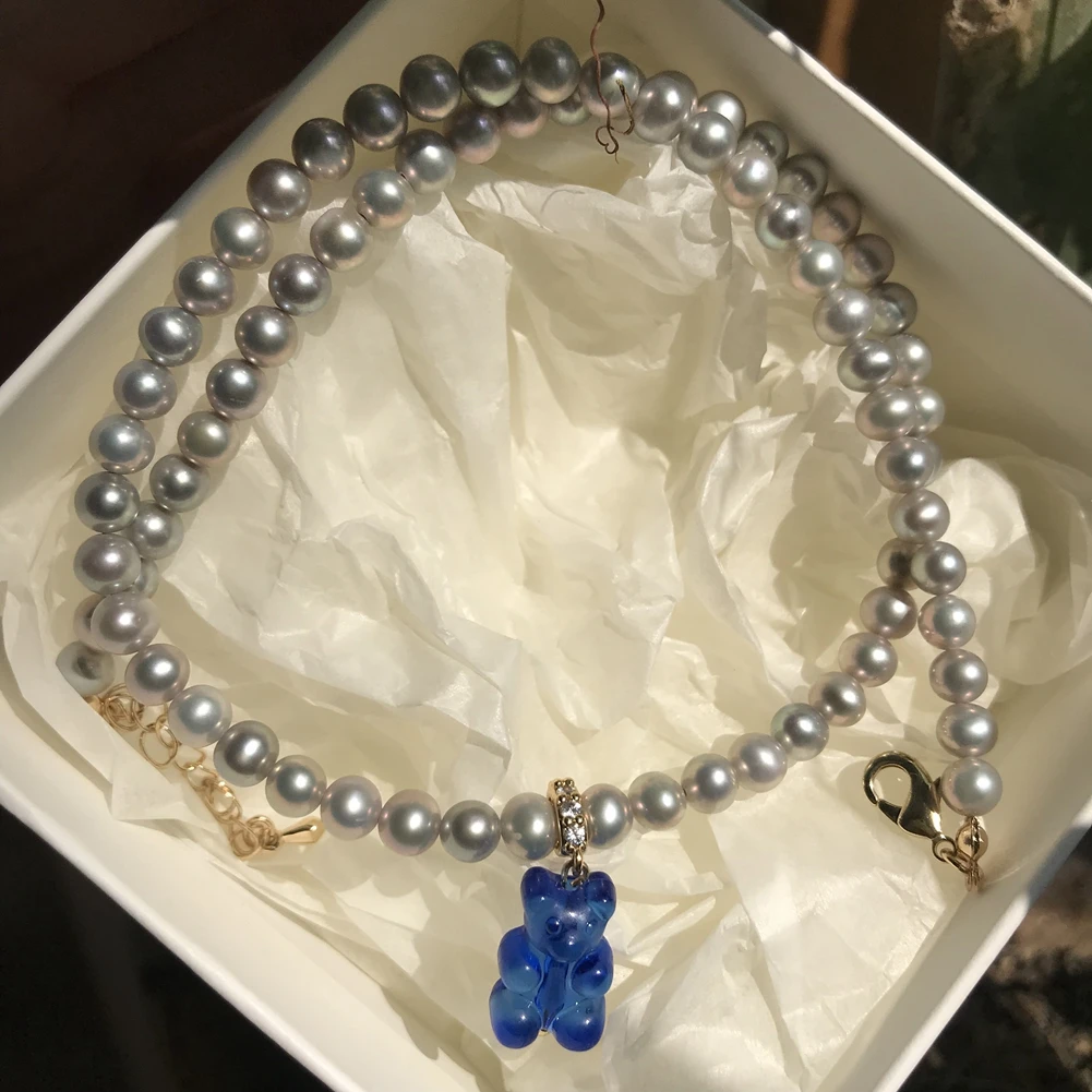 Ожерелье-чокер в виде симпатичного медведя из смолы, жемчужное ожер...