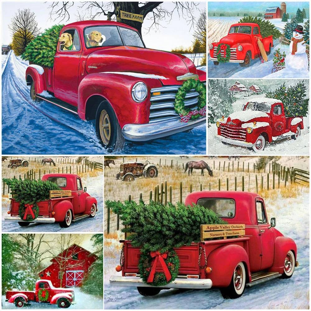 5D бриллиантовый рисунок Рождество автомобиль полная дрель квадратная круглая Алмазная вышивка мозаика пейзаж зимнее искусство рождественские украшения для дома подарок
