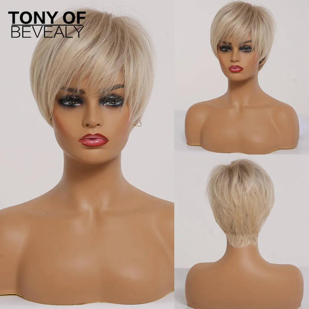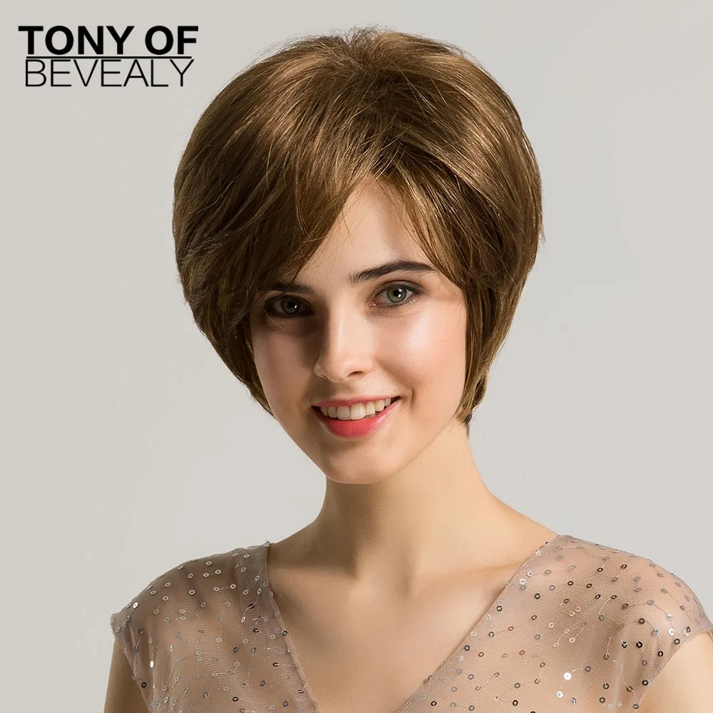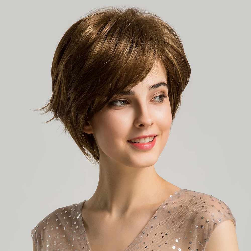 Короткие прямые смешанные Коричневые Серые синтетические волосы парики с челкой для женщин натуральные ежедневные технические термостойкие волокна