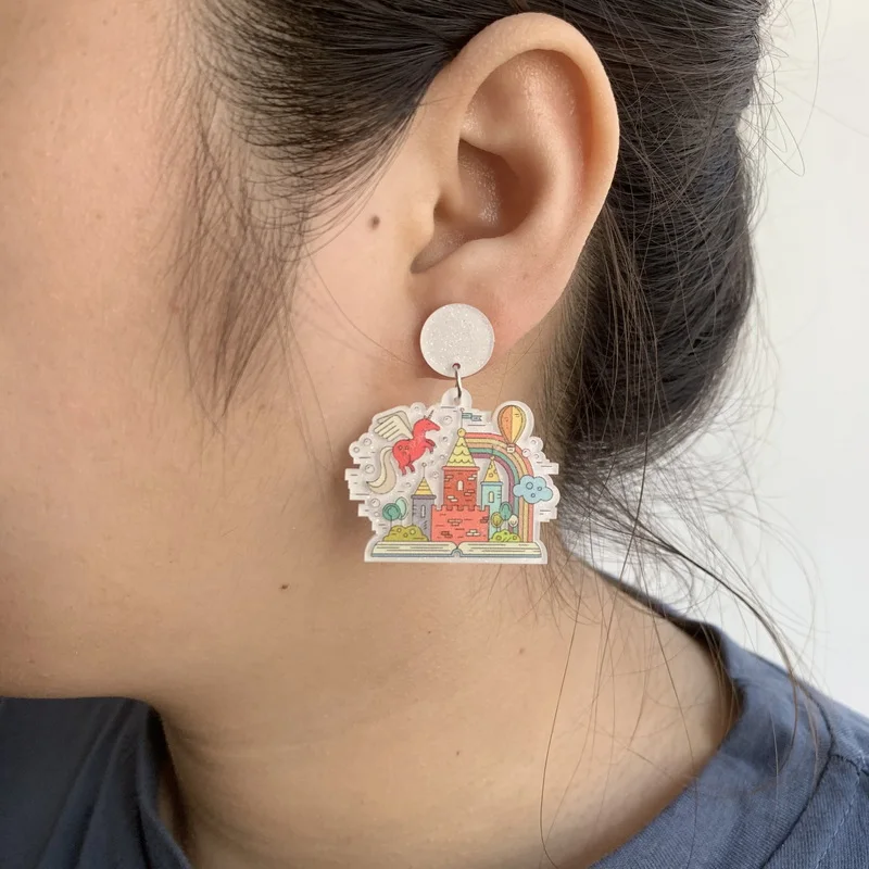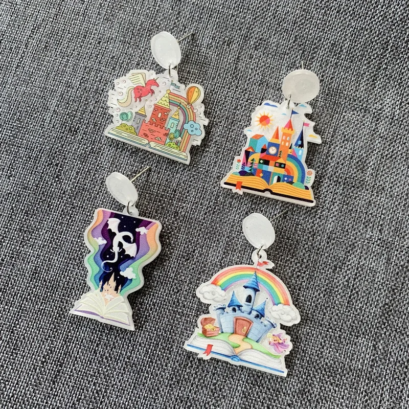Милая история книга печать красочный замок с радугой Фея Единорог Дракон горячий воздушный шар белый блеск акриловые подарочные серьги-гвоздикиМатериал: акрилЕдинорог Размеры: 2,8*3,5 смЗащита от солнца Размеры: 3,5*3,2 смФея Размеры: 3,8*3,3 смДракон Размеры: 3,7*2,5 смPS: Мы можем настроить любой дизайн и цвет (для настройки, пожалуйста, свяжитесь с нашей службой поддержки клиентов)