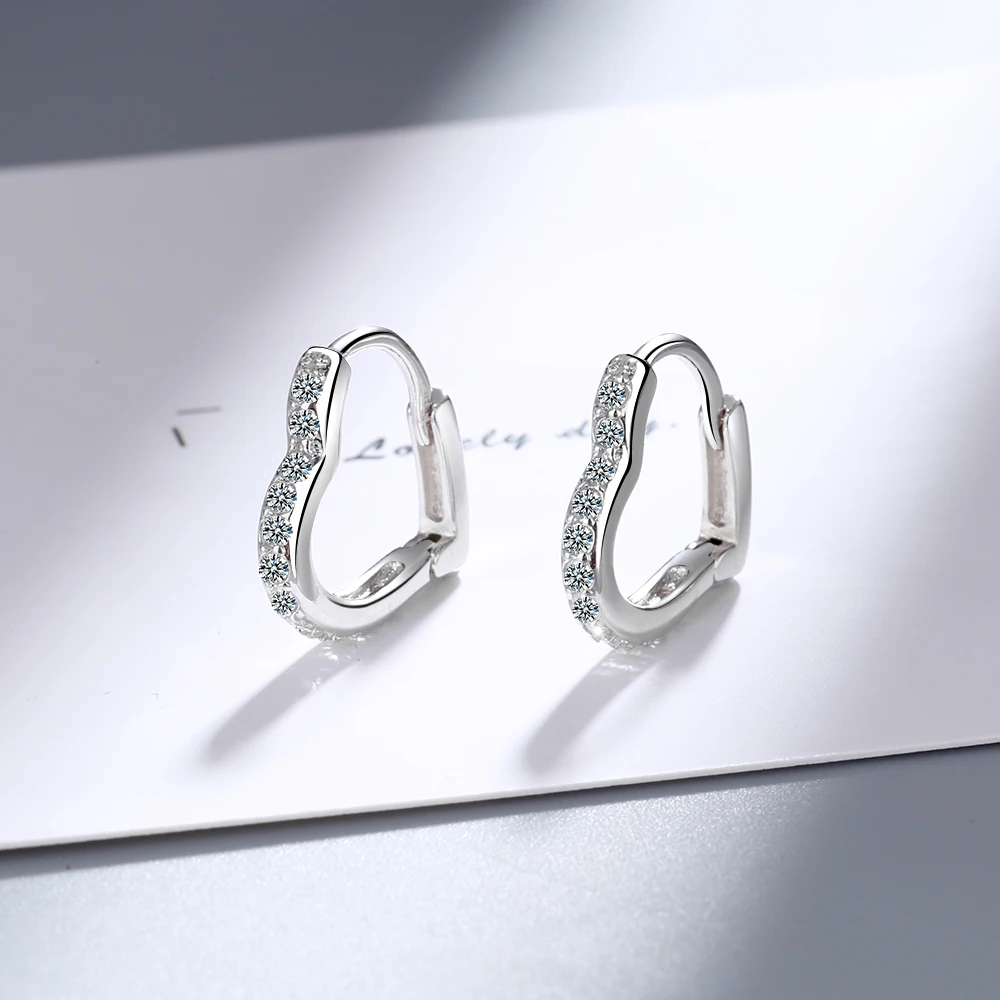 Fashion 925 Silver Clear Zirconia Lover Heart Hoop Earring For Baby...
