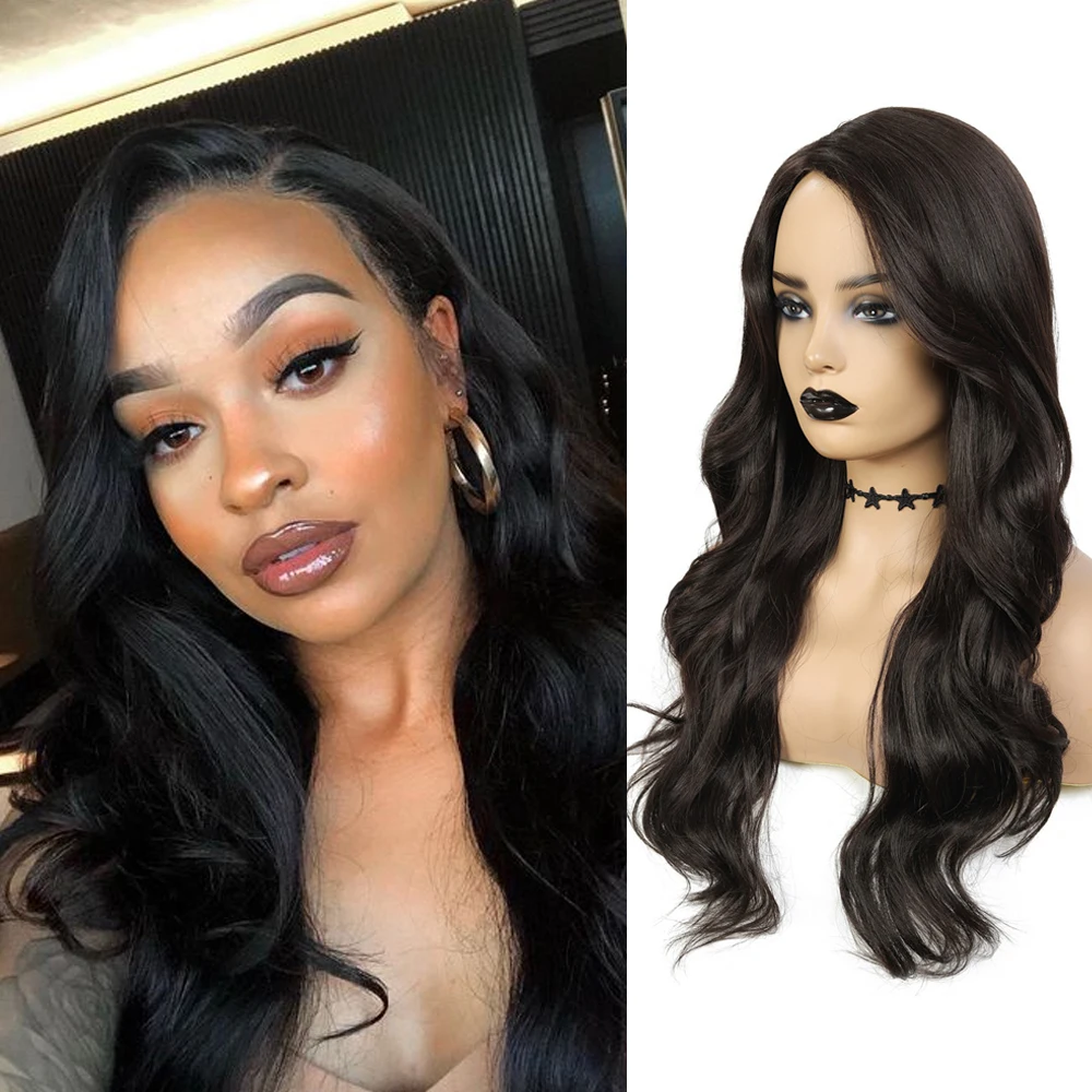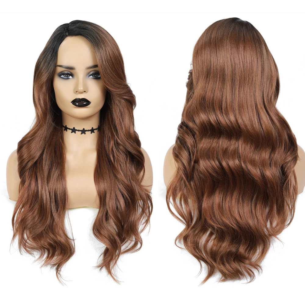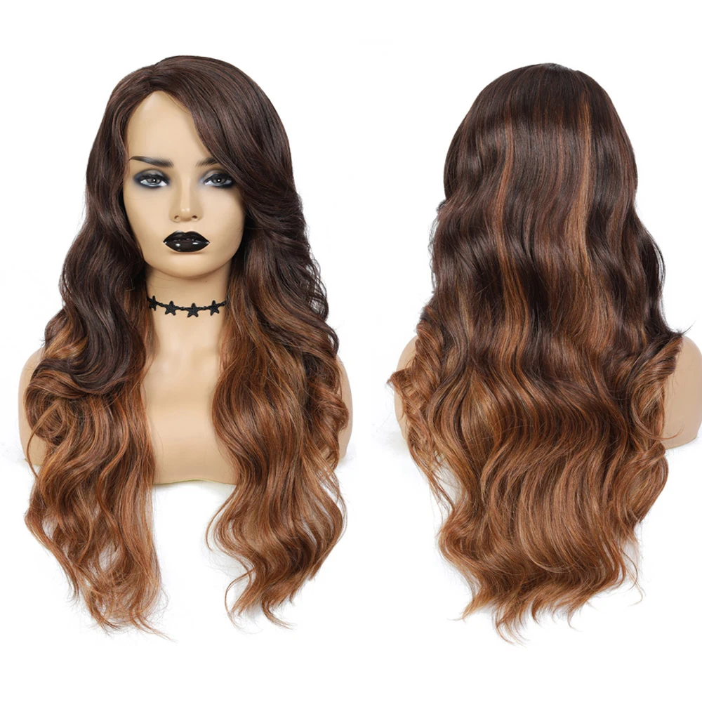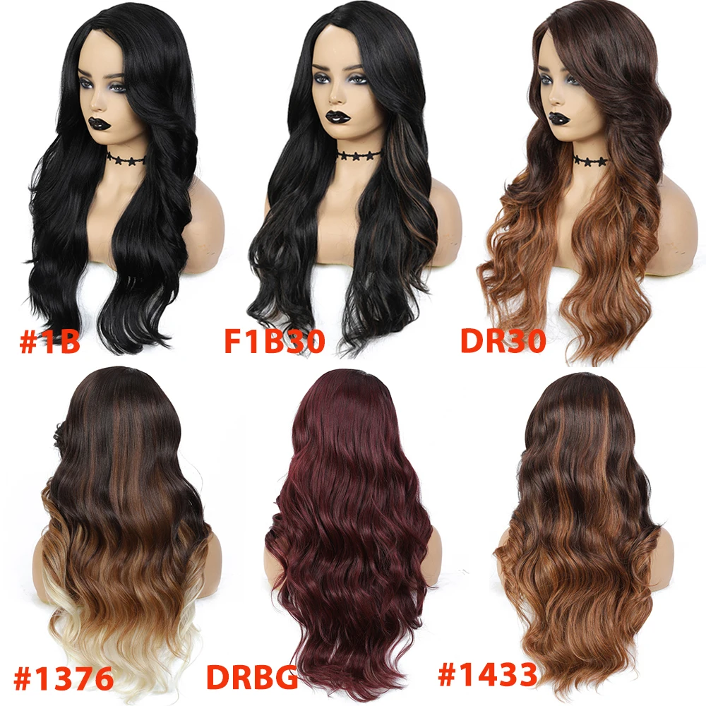 25 дюймовые длинные черные синтетические парики с коричневыми прямыми цветами баг длинные волнистые волосы для женщин парик с боковой частью