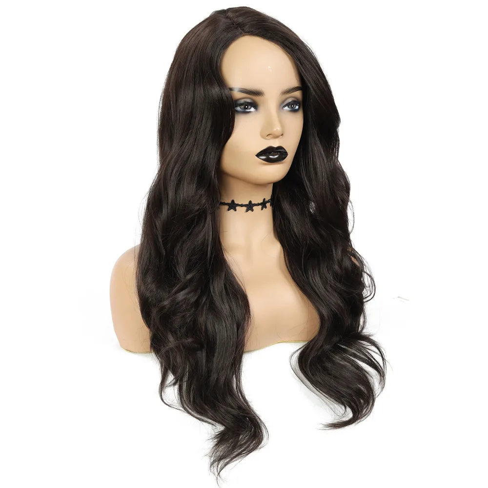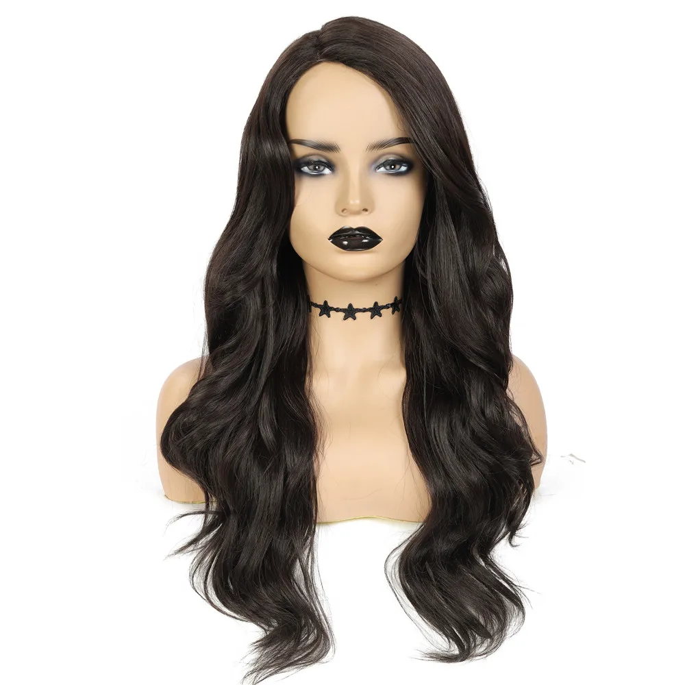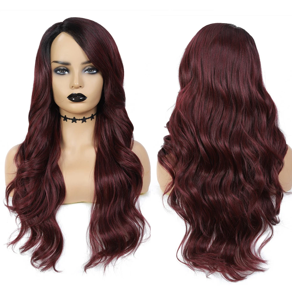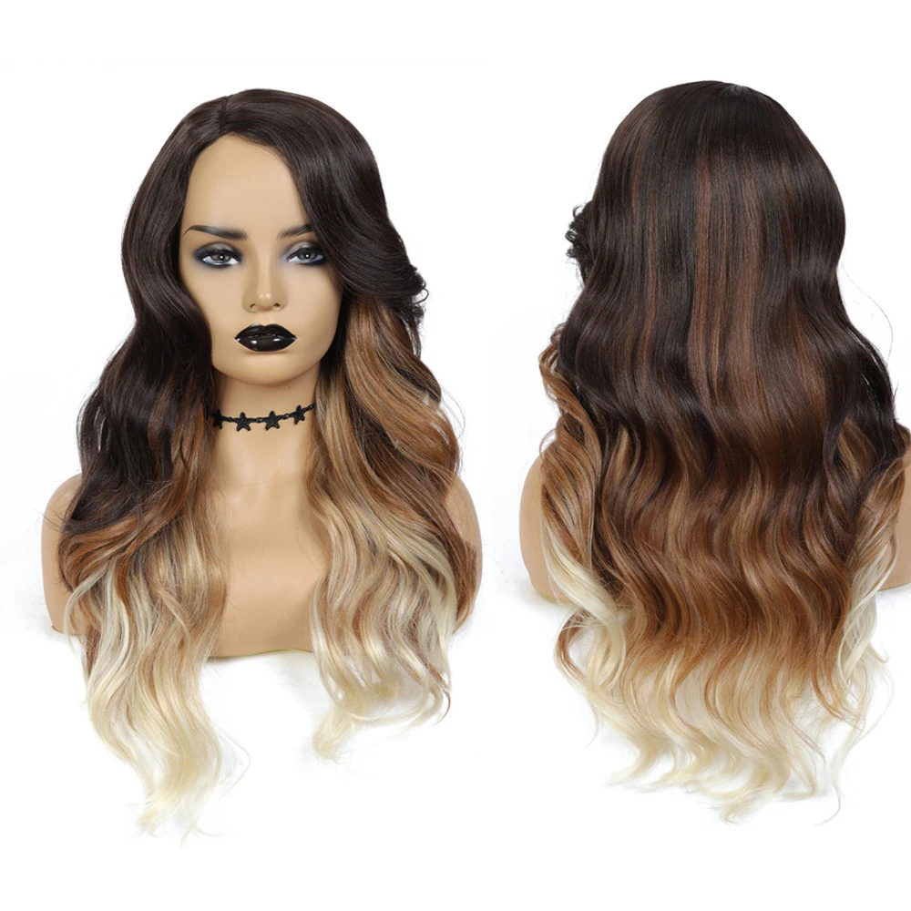 25 дюймовые длинные черные синтетические парики с коричневыми прямыми цветами баг длинные волнистые волосы для женщин парик с боковой частью