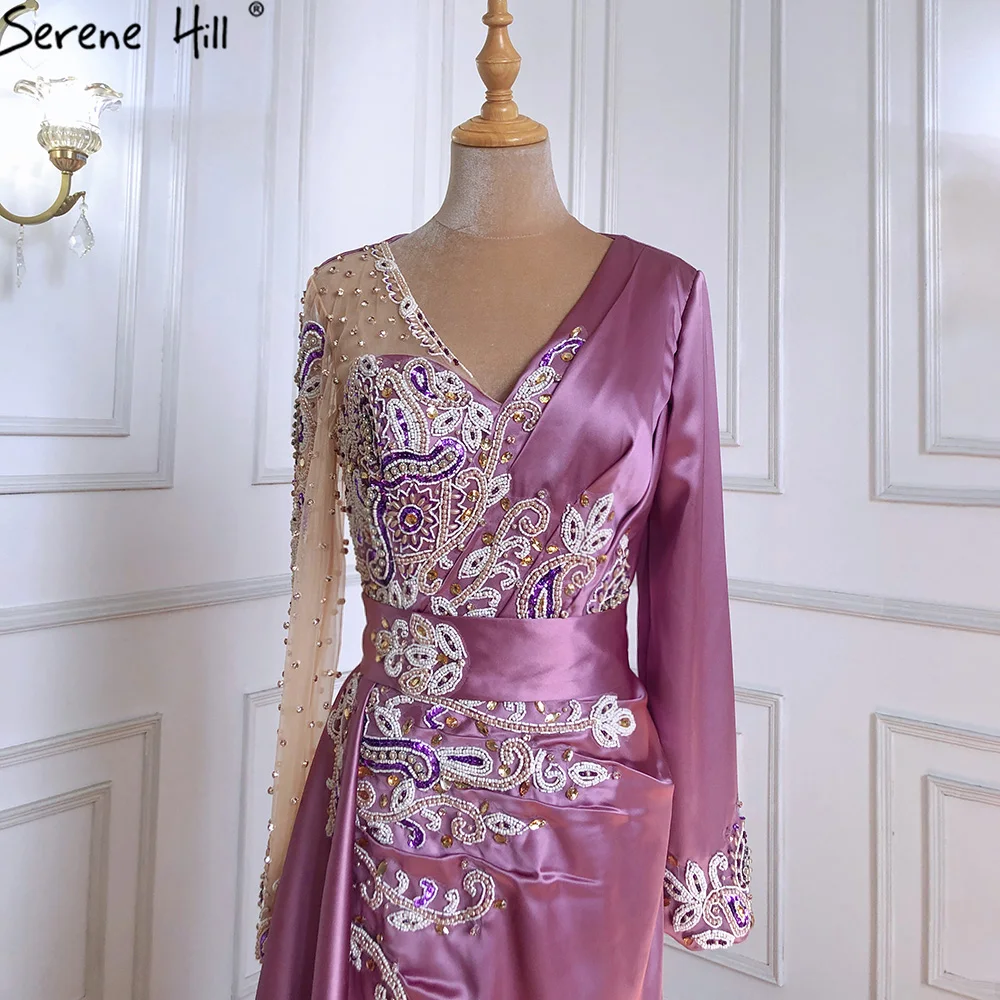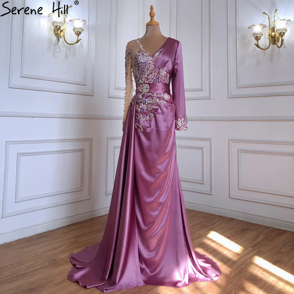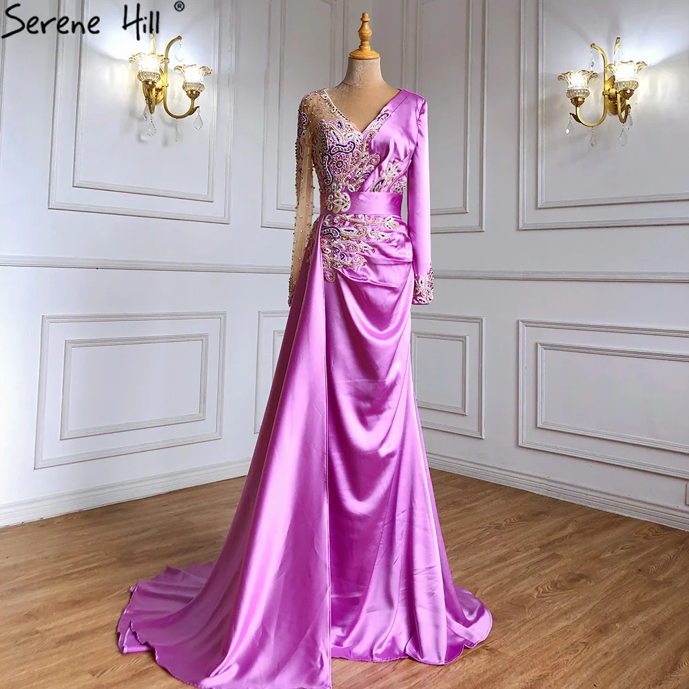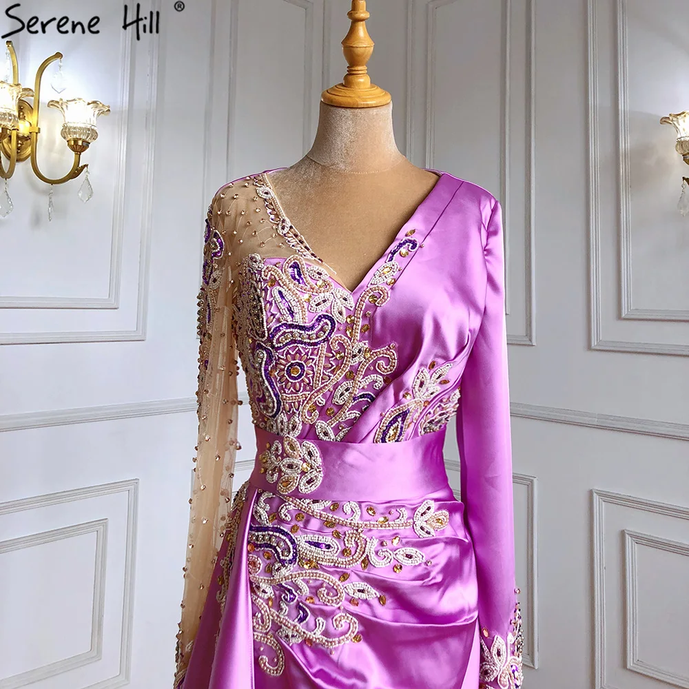 Серен Хилл фиолетовые атласные вечерние платья русалки 2021 элегантные бисером Роскошные для женщин вечерние LA71364
