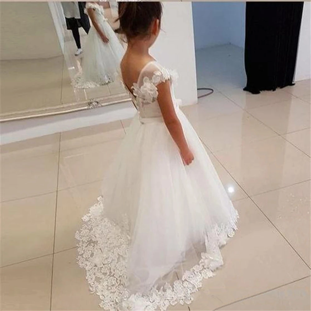 Новые Белые Платья с цветочным принтом для девочек, высококачественные фатиновые Платья с коротким рукавом на заказ для первого священного причастия
