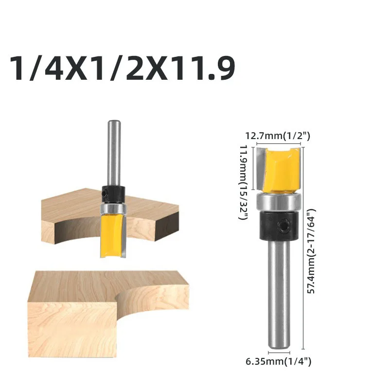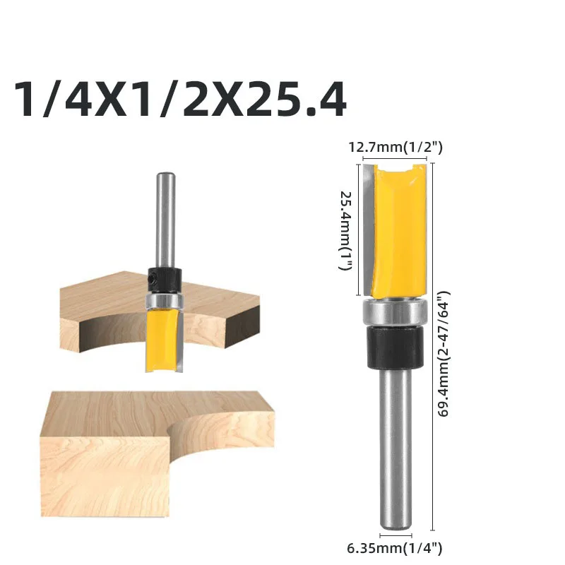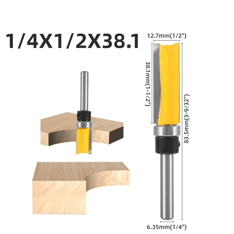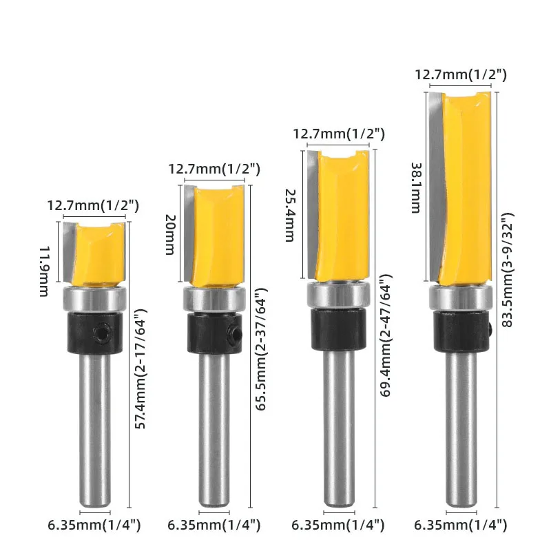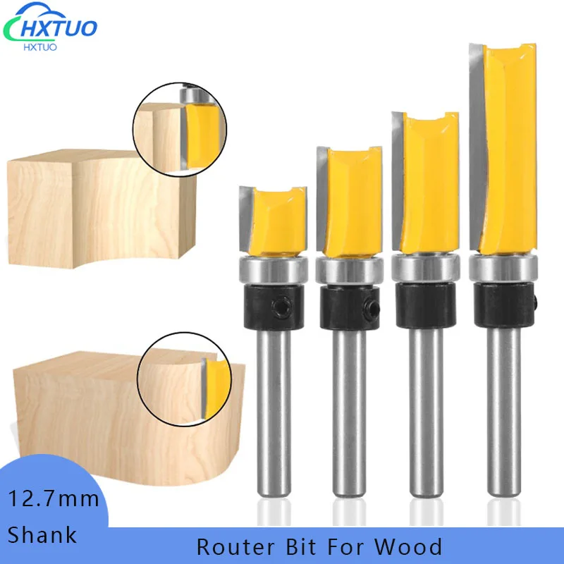 Трафарет с хвостовиком 12,7 мм, Концевая фреза для обрезки, прямая фреза, триммер, очистка, обрезка, инструменты для деревообработки