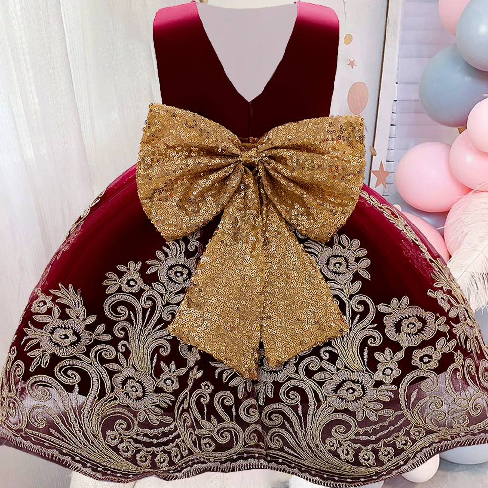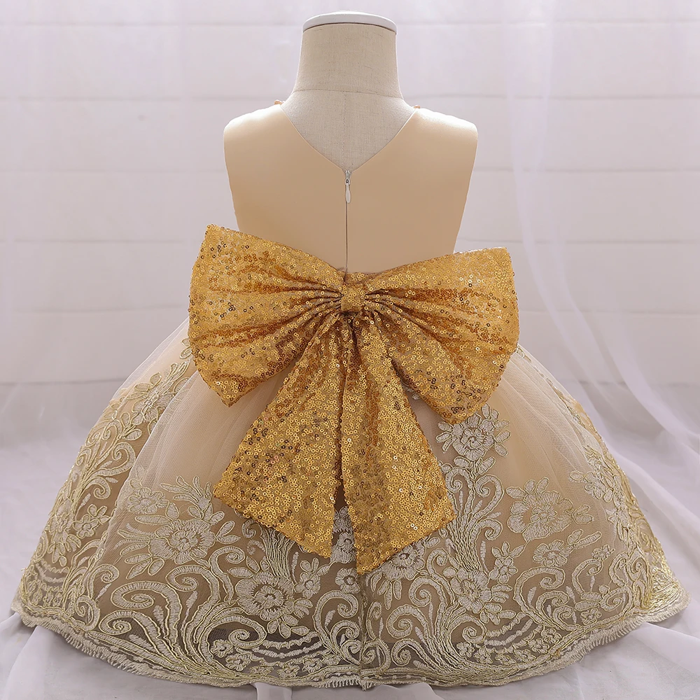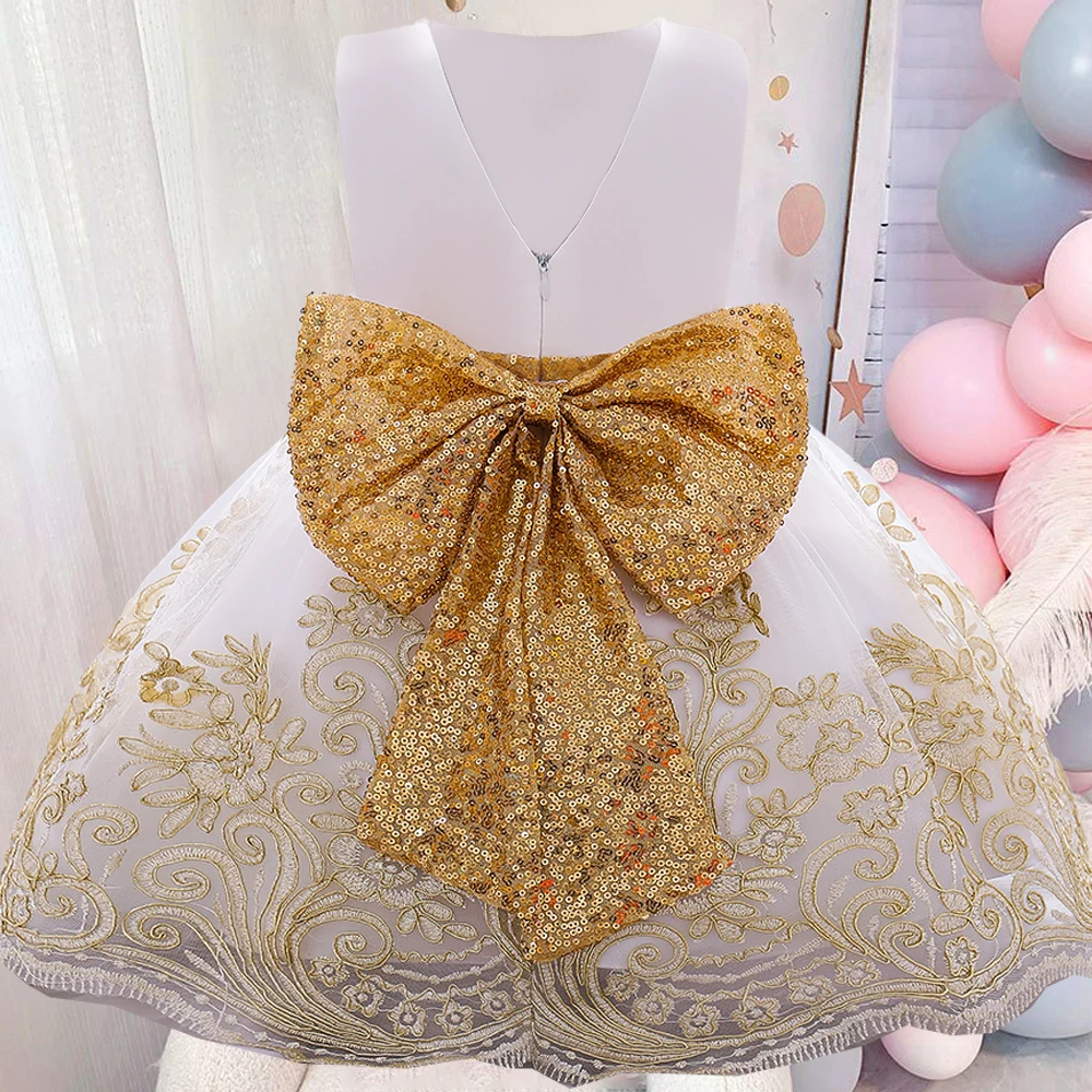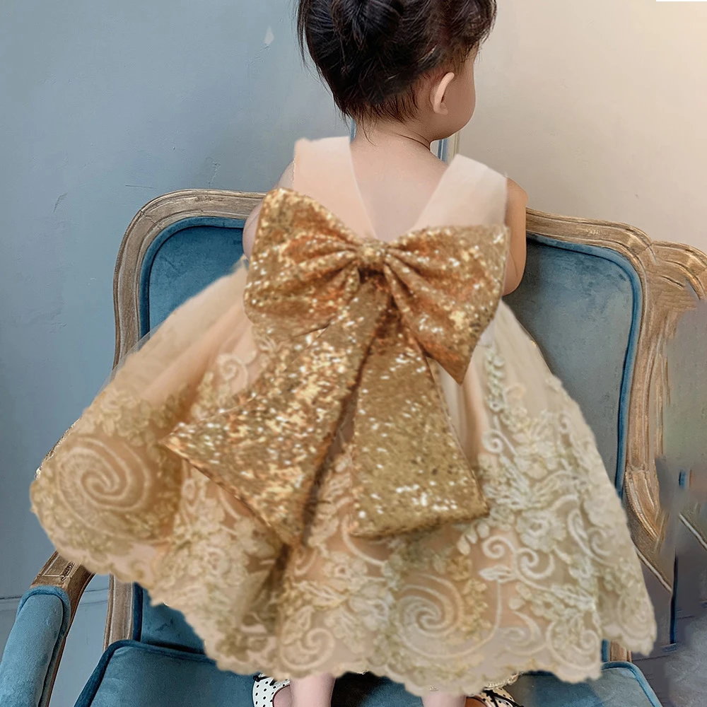 Платье для маленьких девочек с большим бантом и блестками, платье на 1 год, день рождения, свадьбу, для новорожденных, детское бальное платье-пачка для крещения, одежда, платья