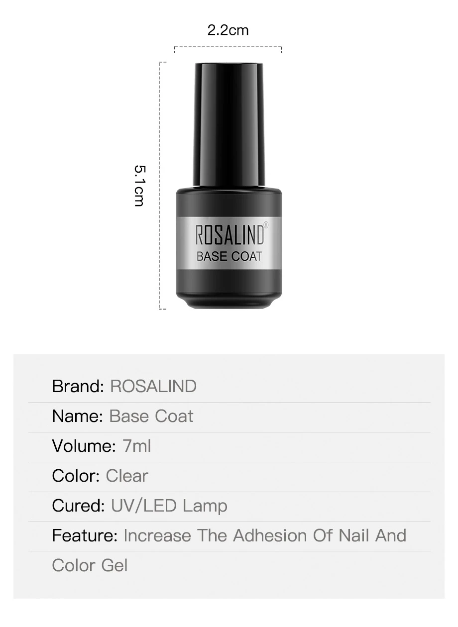 Бренд: ROSALINDНазвание: грунтовкаОбъем: 7 млЦвет: прозрачныйИзлечивается: сушить на воздухеОсобенность: скрепить ногти и гельБренд: ROSALINDНаименование: базовое пальтоОбъем: 7 млЦвет: прозрачныйИзлеченная: УФ/Светодиодная лампаОсобенность: увеличение адгезии ногтей и цветного геляБренд: ROSALINDНаименование: верхнее пальтоОбъем: 7 млЦвет: прозрачныйИзлеченная: УФ/Светодиодная лампаХарактеристики: защита ногтей от истиранияБренд: ROSALINDНаименование: матовое верхнее пальтоОбъем: 7 млЦвет: прозрачныйИзлеченная: УФ/Светодиодная лампаХарактеристики: защита ногтей от истирания-Качество-наш первый приоритет.-Почти нет запаха (только верхнее покрытие и основа имеют умеренный запах), мы применяем только органическую текстуру для защиты вашего здоровья.-Кисть мягкая и легко наносится.-Он долговечен и делает Гель-лак длительным в течение 30 днейФункцияГрунтовка-Долговечность/Здоровье/Замачивание-Увеличение адгезии ногтей и базового покрытия-Не отслаивается легко