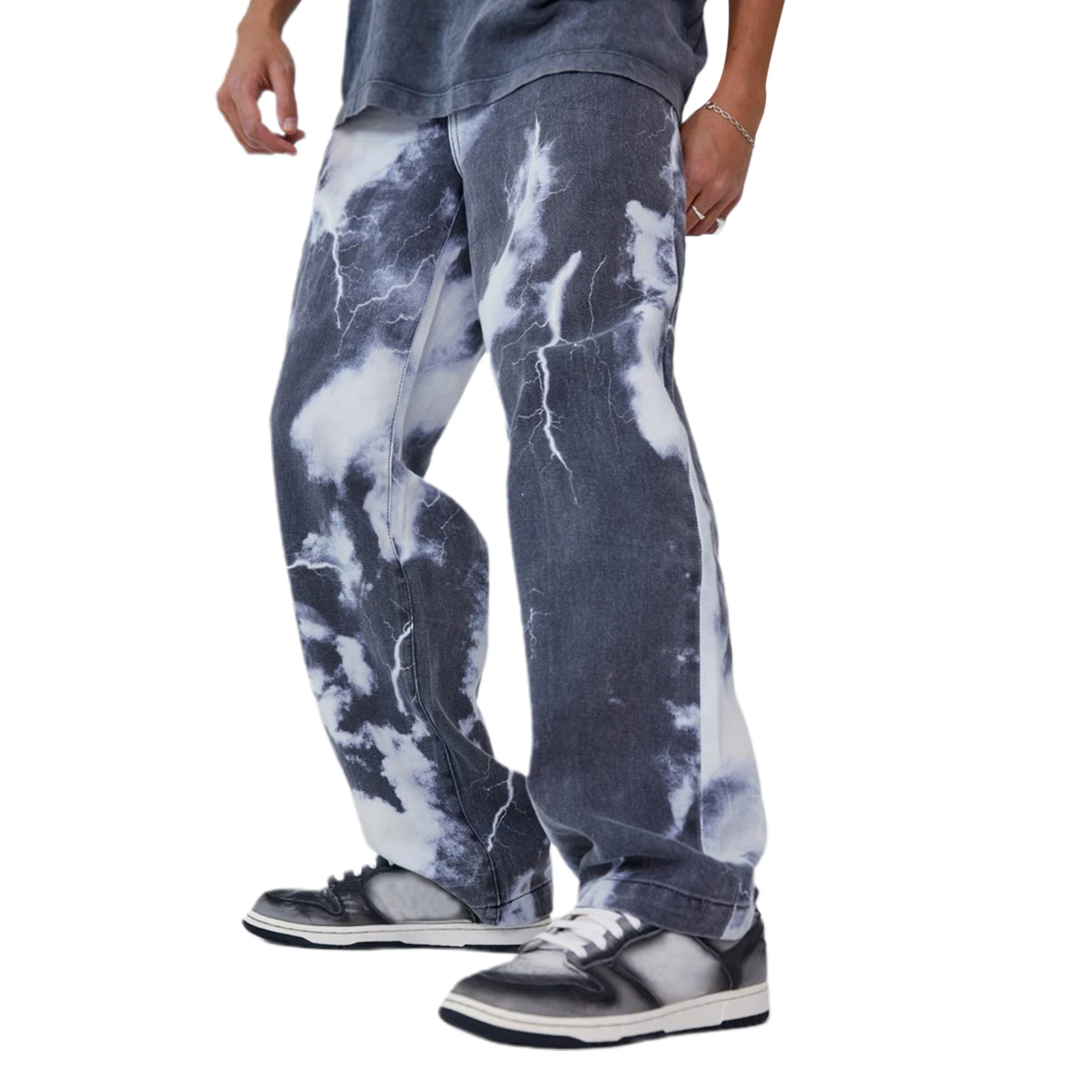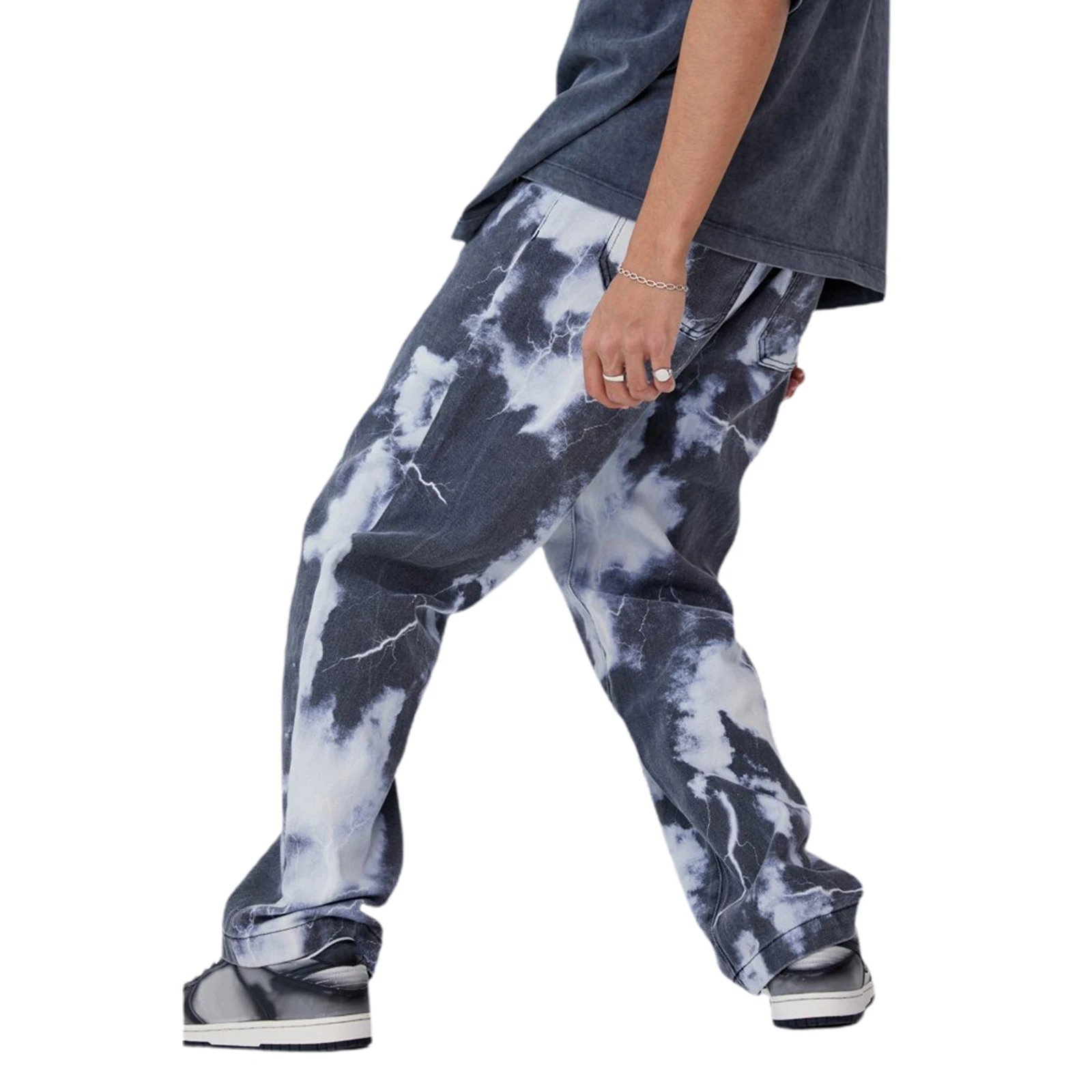 Джинсы мужские свободного покроя, уличная одежда, брюки с принтом молнии, облака, с карманами, цветные блоки, весна-осень