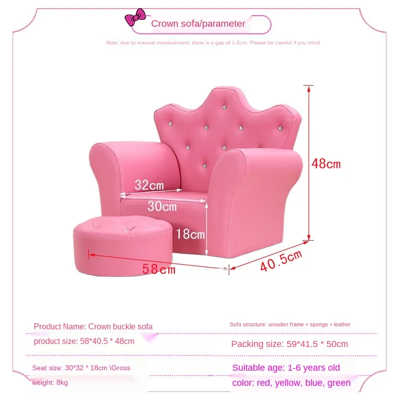 Высококачественная детская мебель, диваны в Корейском стиле, с короной, с пряжкой, комбинированный диван, модный стул для ног, подарок ребенку на день рождения