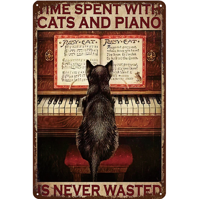 Время, потраченное с кошками и пианино, винтажные металлические таблички, Ретро Бар, паб, комната, настенные декоративные тарелки