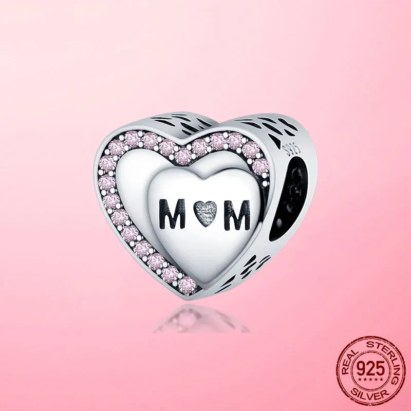 Бусины в форме сердца из серебра 925 пробы, подвеска с цветным фианитом для мам, подходят для оригинального бренда, подвески из серебра 925 пробы для изготовления ювелирных изделий