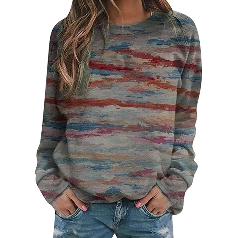 2021 осенние женские толстовки, Толстовка Оверсайз, женская Свободная Толстовка с длинным рукавом и принтом тай-дай, женские теплые толстовки, пуловеры