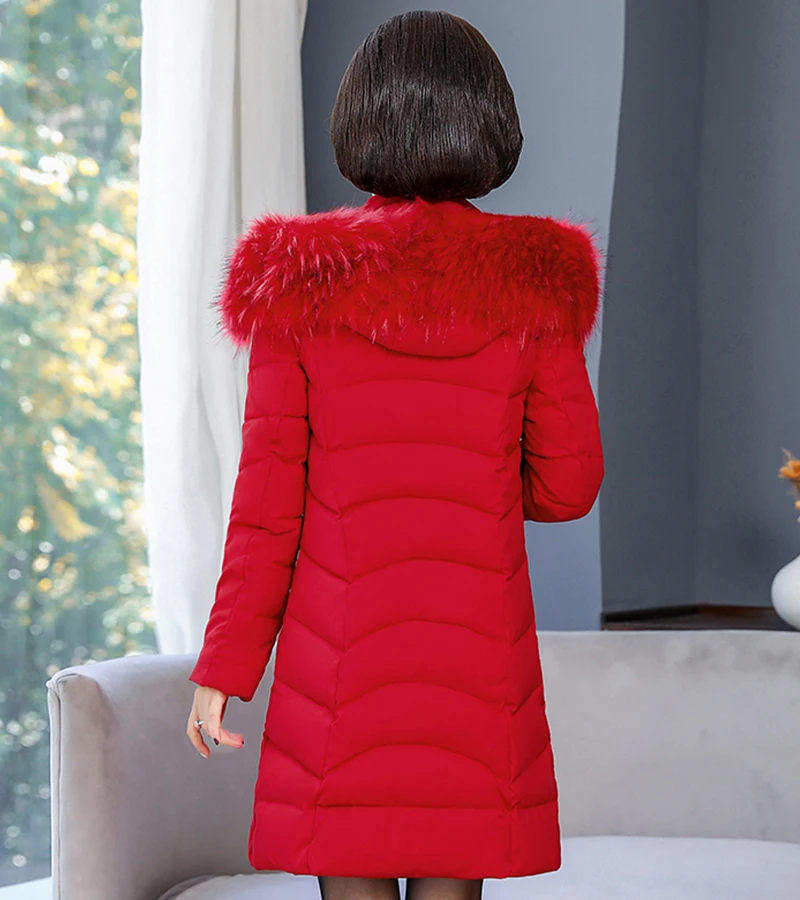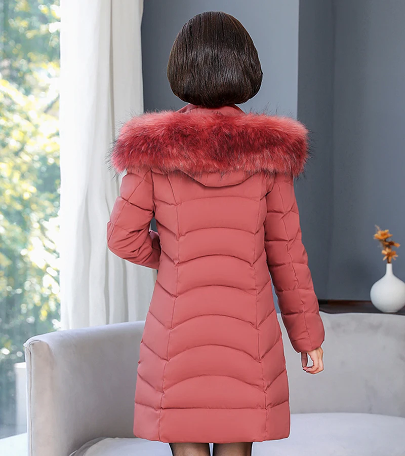 Женская зимняя длинная парка, однотонная Толстая куртка оверсайз с капюшоном и меховым воротником, офисное Женское пальто, верхняя одежда, 2021