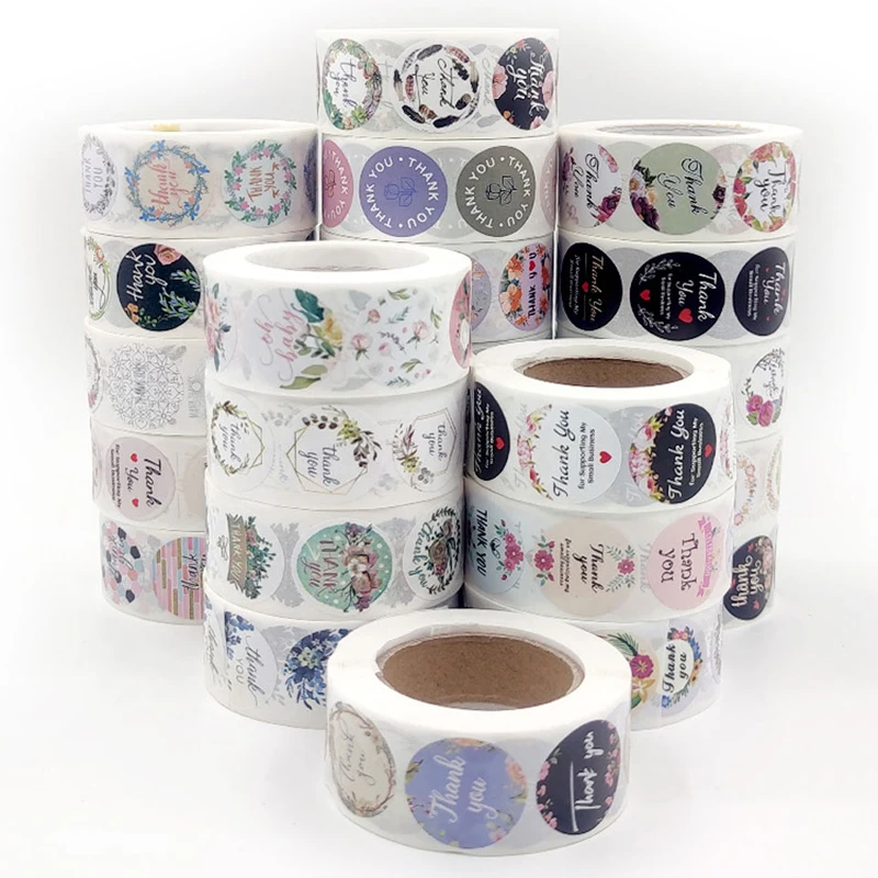 500 шт.рулон, наклейки с цветочным узором, 1 дюйм, 25 мм