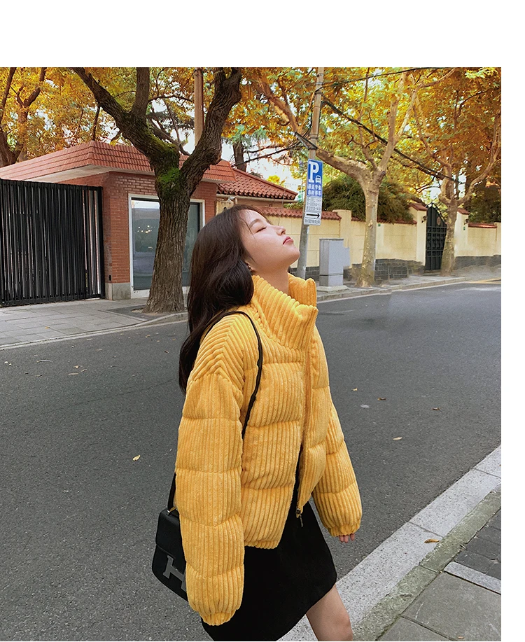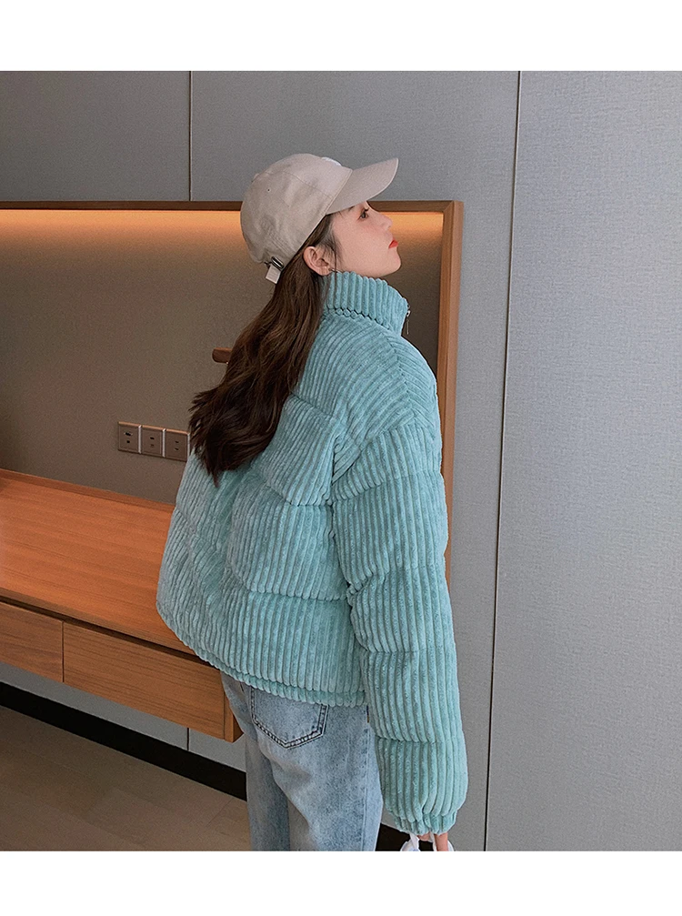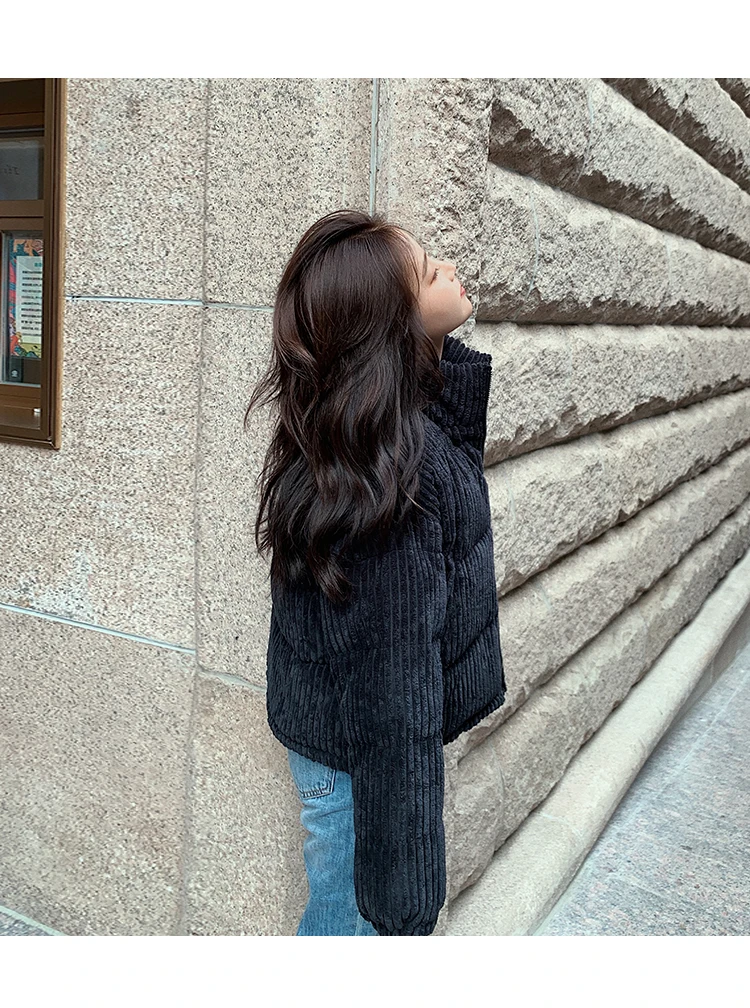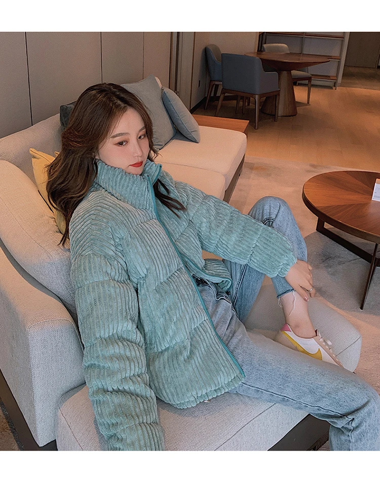 Новая зимняя Женская куртка, Вельветовая куртка с хлопковой подкладкой, новое зимнее теплое плотное короткое пальто, женская облегающая однотонная Корейская женская верхняя одежда