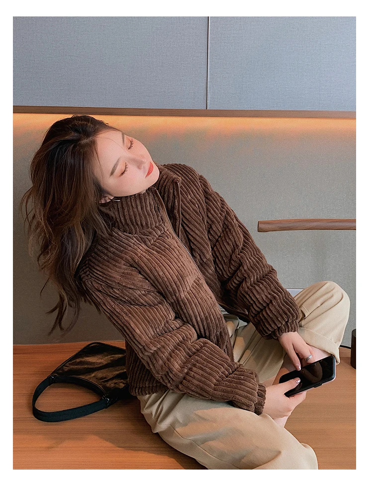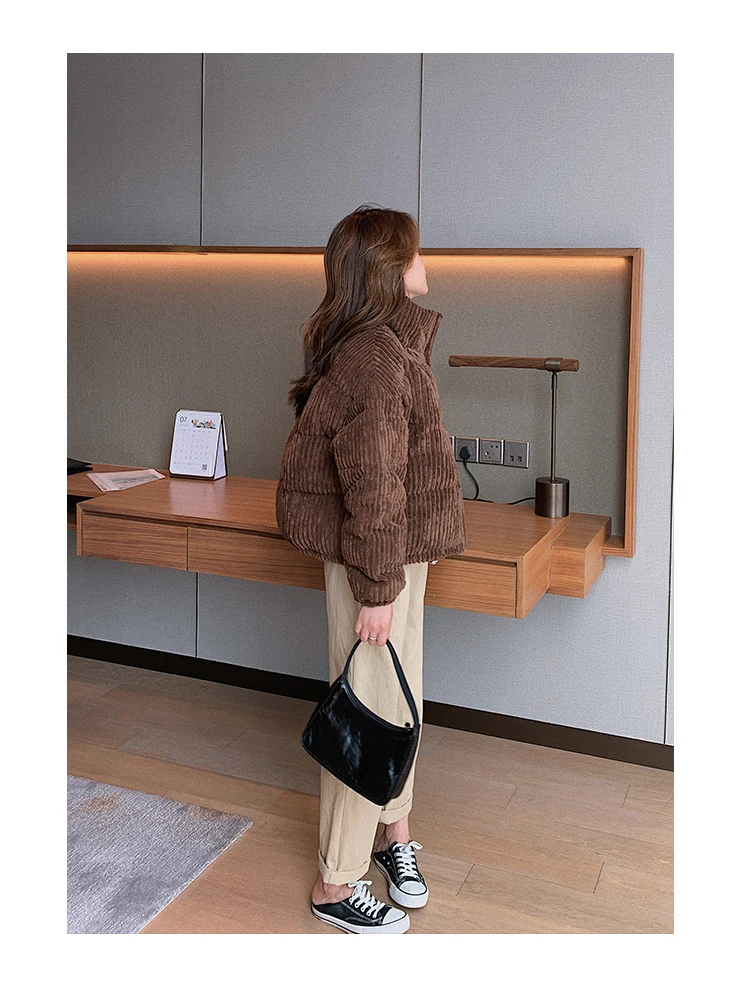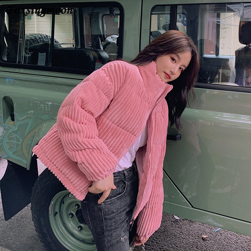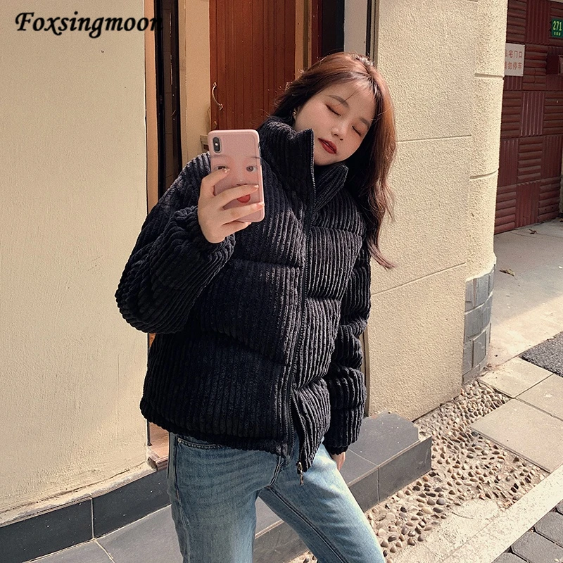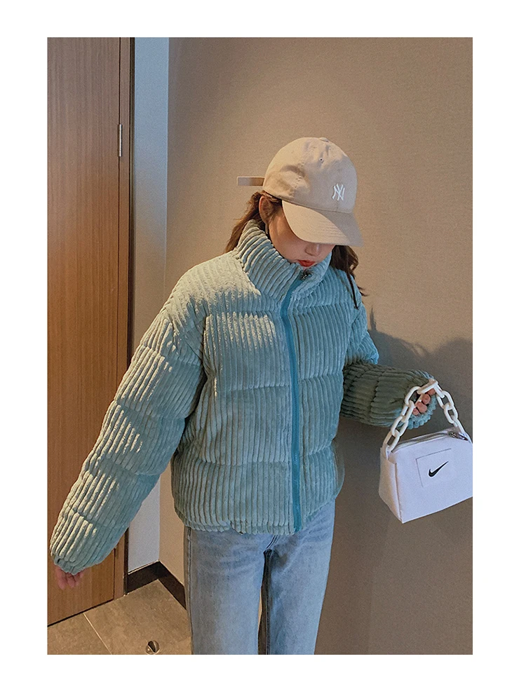 Новая зимняя Женская куртка, Вельветовая куртка с хлопковой подкладкой, новое зимнее теплое плотное короткое пальто, женская облегающая однотонная Корейская женская верхняя одежда