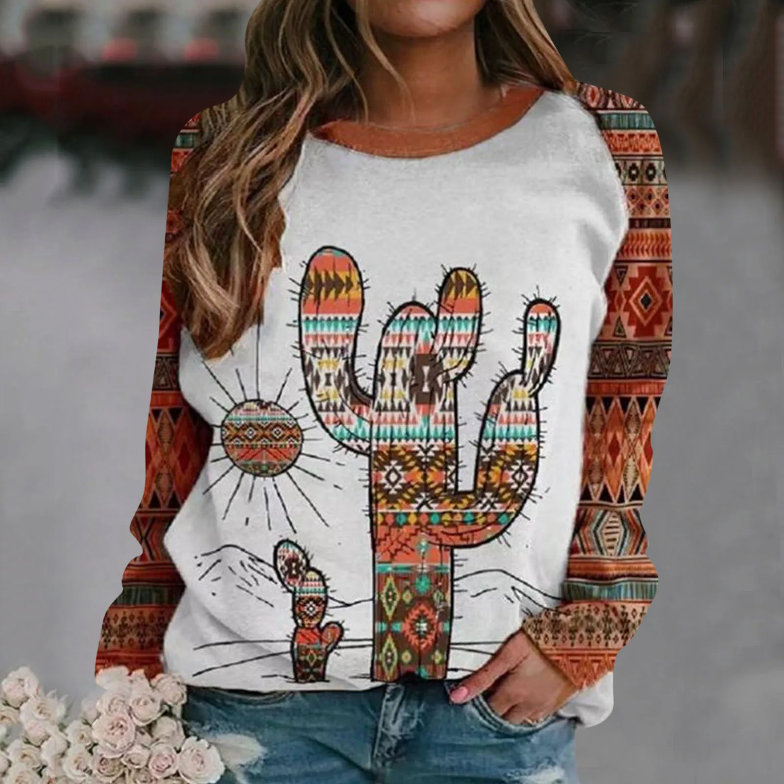 Женские повседневные рубашки с принтом, термо круглый вырез, футболки с длинным рукавом, свободные