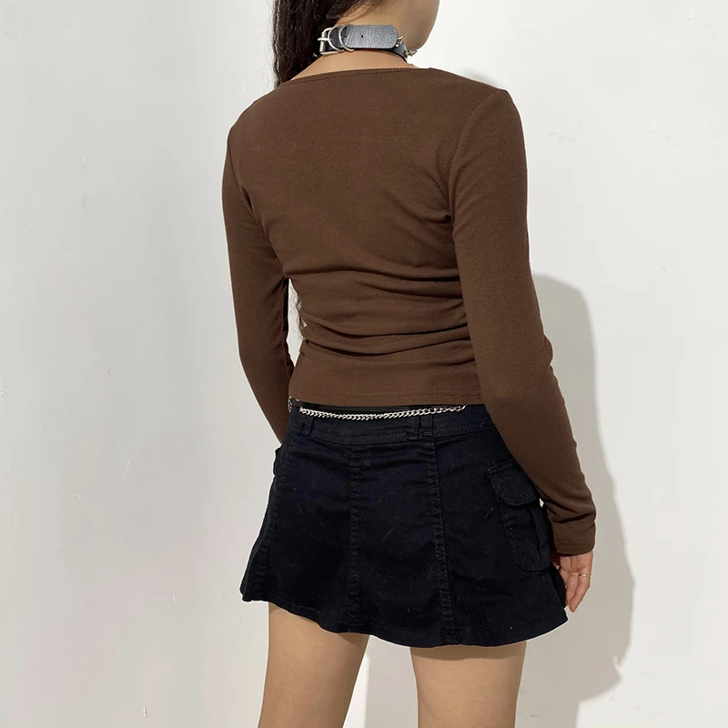 Darlingaga Fairycore гранж разы коричневые женские футболки осенний укороченный топ темная Академия Ретро эстетический пуловер Одежда