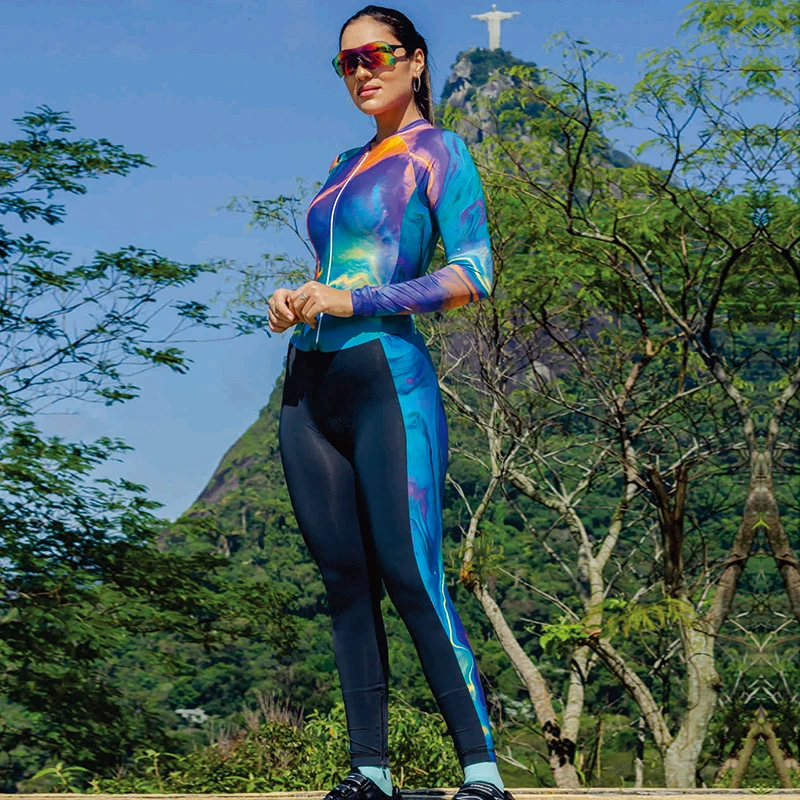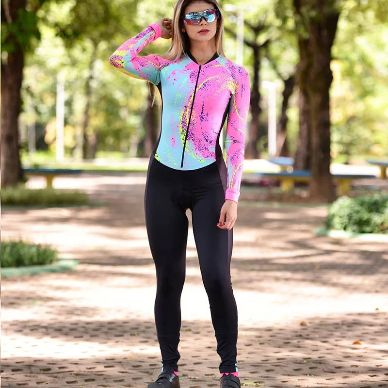 Триатлонный велосипедный комбинезон, Женский обтягивающий костюм с длинным рукавом в виде маленькой обезьяны, велосипедный Трикотажный костюм для бега, плавания, костюм для горного велосипеда