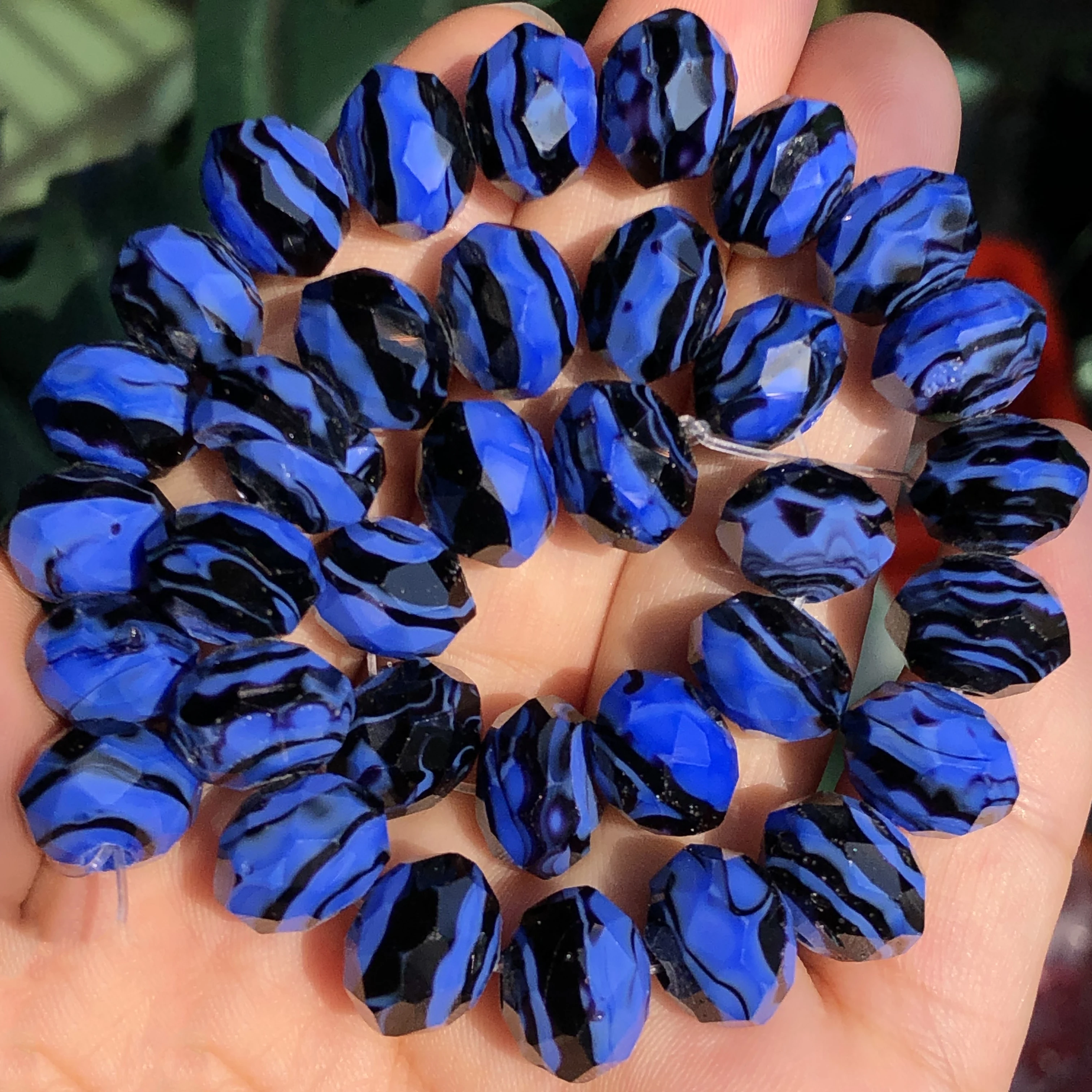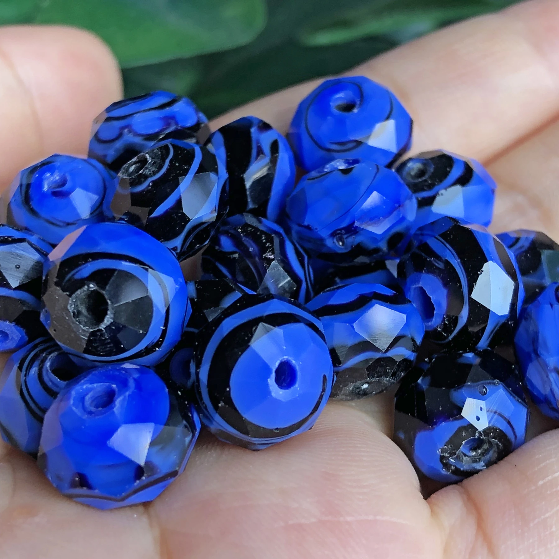 Бусины из муранского стекла, граненые, синие и черные, 12 мм