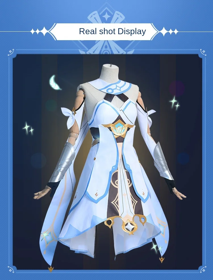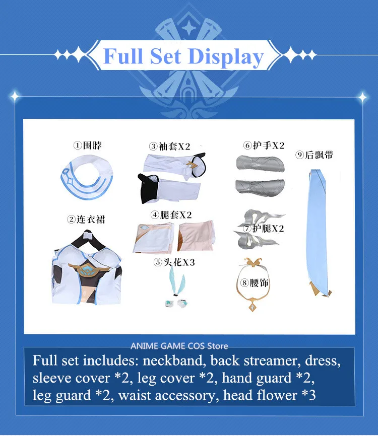 Женский костюм для косплея героев мультфильма «Холодное сердце», костюм для ролевых игр на ХэллоуинИнформация о продуктеНазвание: игра Косплей COS LumineИсточник костюма:Аниме Genshin ImpactЦель игры: косплей аниме, костюм на Хэллоуин, Рождественский костюм и т. Д.Полный комплект включает в себя:Шейный платок, растяжка сзади, платье, чехол для рукава * 2, чехол для ног * 2, защита рук * 2, Защита ног * 2, аксессуар для талии, головной цветок * 3Материал ткани:Мягкая ткань, подкладка, молочный шелк, жемчужная кожа, принт.Размер платья: XS/S/M/L/XL или на заказРазмер ботинок: 35-46Пол: женскийПримечание:Размеры изделия измеряются вручную, погрешность 1-2 см.Перед размещением заказа рекомендуем внимательно ознакомиться с таблицей размеров перед размещением заказа покупки, а также выбрать в соответствии с вашими размерами дюйма, 1 дюйм = 0,39 см/1 дюйм = 2,54 см